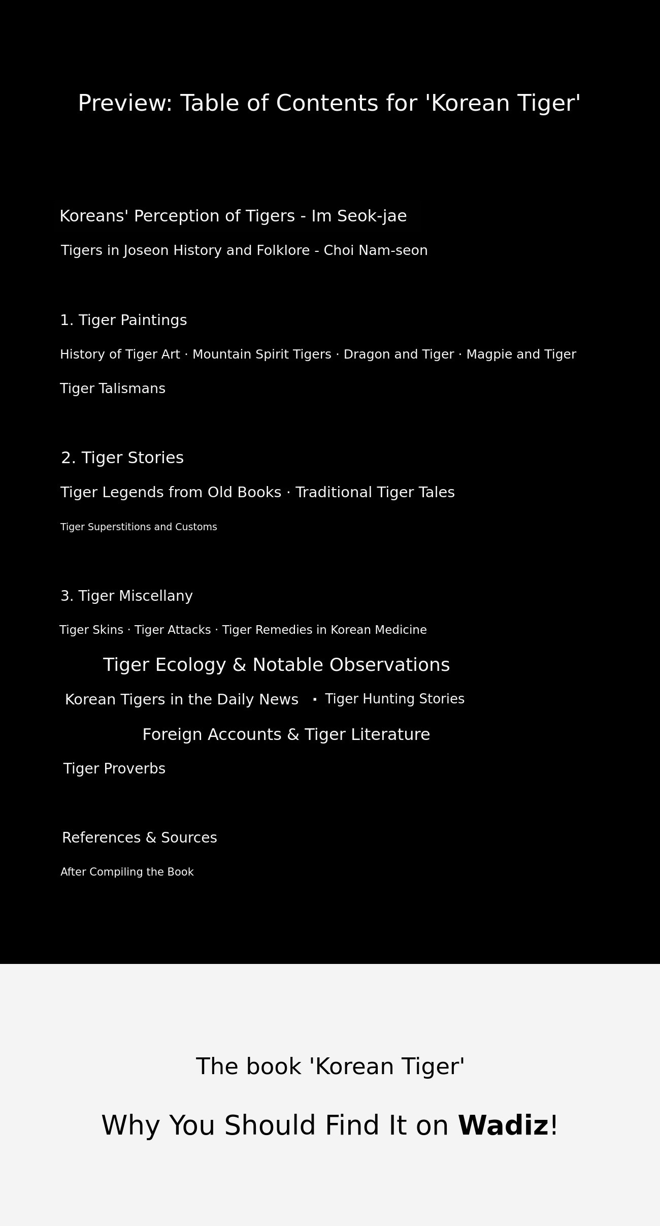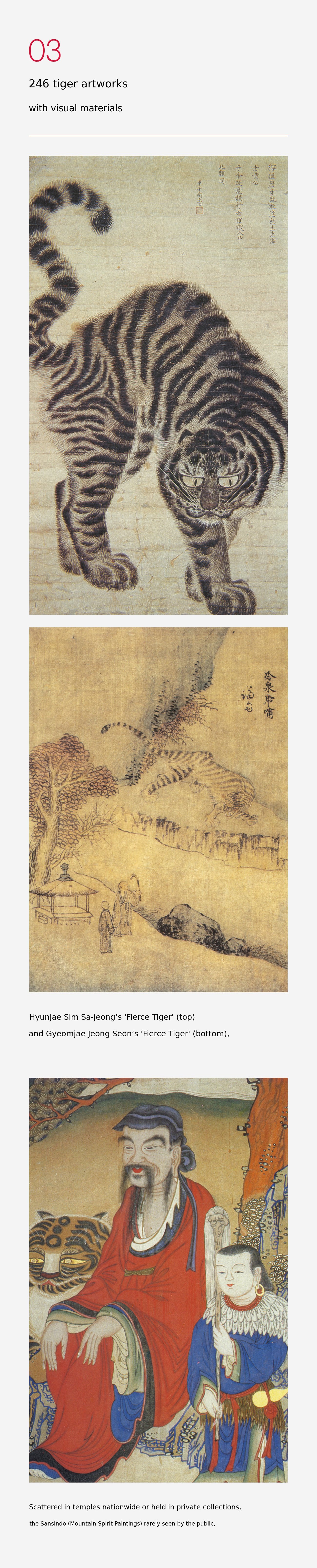 "Jeong Su-dong, a poet of the late Joseon period known for his humorous anecdotes, once traveled to Geumgangsan at someone else's expense on the condition that he would tell old stories, and for dozens of days, he told only tiger stories. Tiger tales are very diverse, including not only real fearsome tigers but also tigers that recognize filial piety, repay kindness, perform miracles, and even dance."