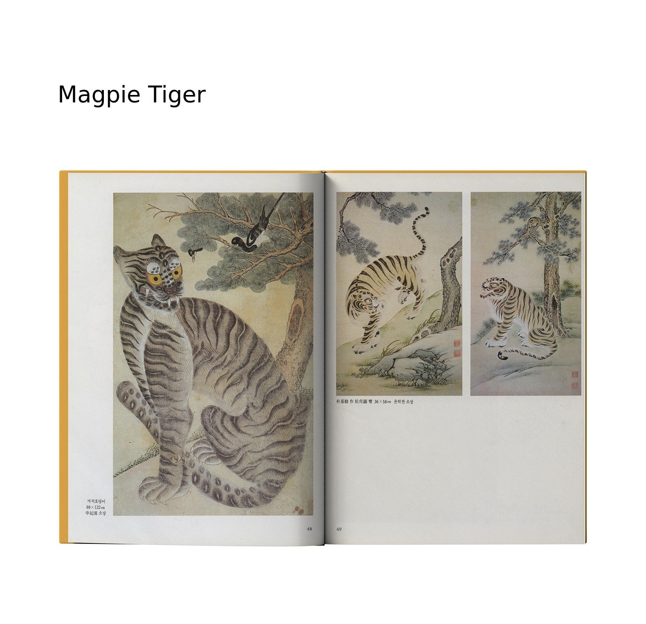 "It is no exaggeration to say that the magpie and tiger painting represents all tiger paintings. Tigers and magpies appear together in Yonghodo, Sansindo, tiger talismans, woodblock prints, and Buddhist paintings, and this combination seems to have been most popular in the 17th to 19th centuries. The magpie and tiger painting was most frequently depicted in folk paintings, and with its humor, satire, abstract expression, and various colors, it best expresses the spirit of the people in the late Joseon period."