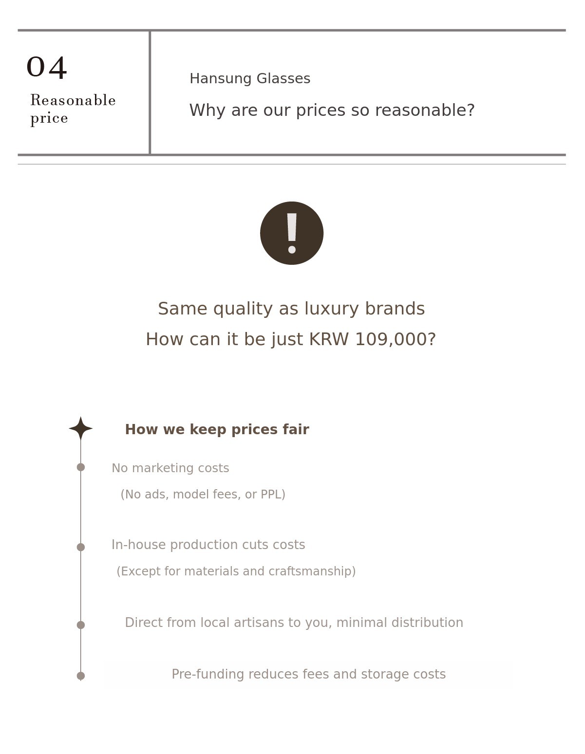 So, BURSTHERS has been thinking about what kind of glasses can truly contain our sincerity. We always wondered how we could offer good glasses to customers at an affordable price. Starting from that concern, we prepared this Wadiz project. We are very pleased to be able to approach our supporters with good products, good designs, and good prices through this Wadiz project.