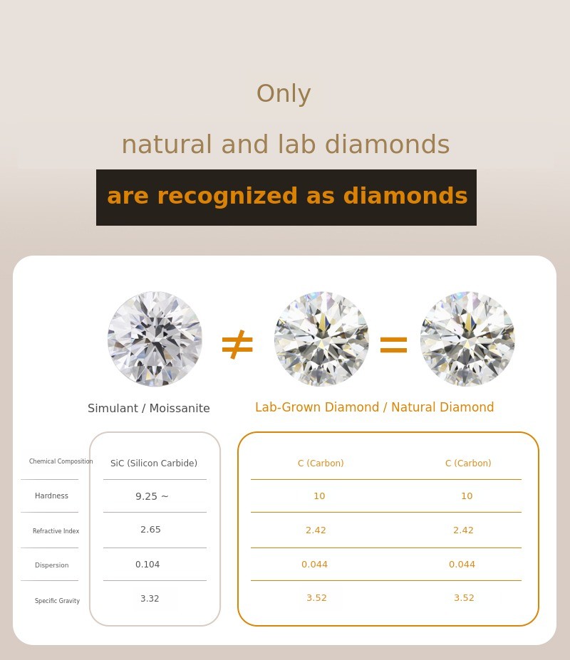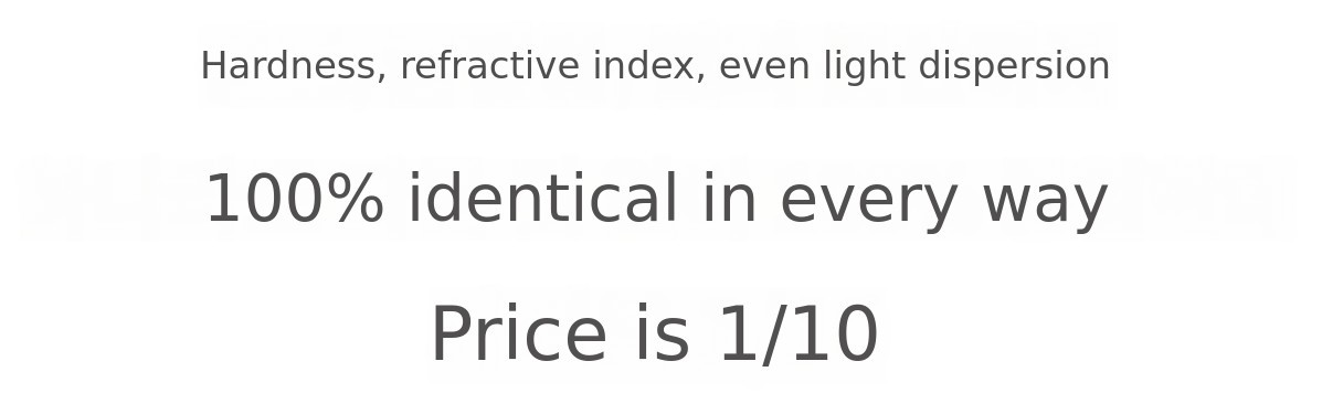 Simulants that only mimic the shape and brilliance/MoissaniteIs fundamentally different from the start The most globally trusted