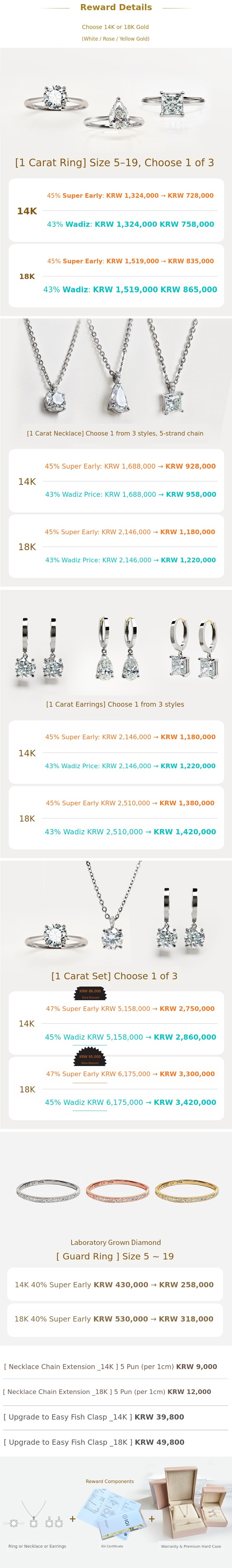 1) We use only 14K/18K gold and specified diamonds that meet standard specifications.