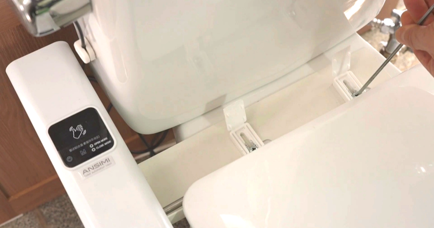 After removing the existing toilet cover, place Ansimy, tighten the upper screws to secure it, and close the screw covers to complete the installation.