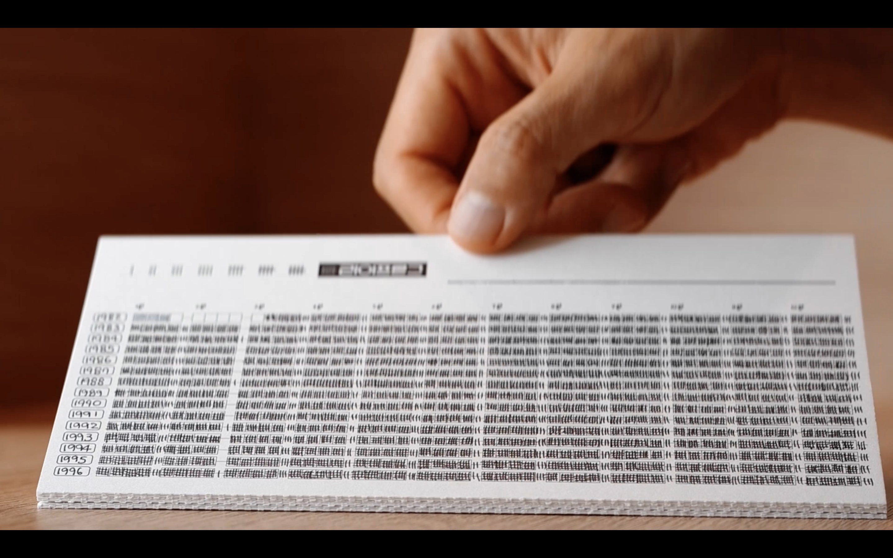 このようにして、100年の年月と630mmの幅を持つ一枚の紙が、切れ目や接着なしでも片手で握れる形になりました。Thus, a span of one hundred years was brought into form, fitting entirely within a single sheet of paper 630 millimetres wide, held in the palm of one hand.
