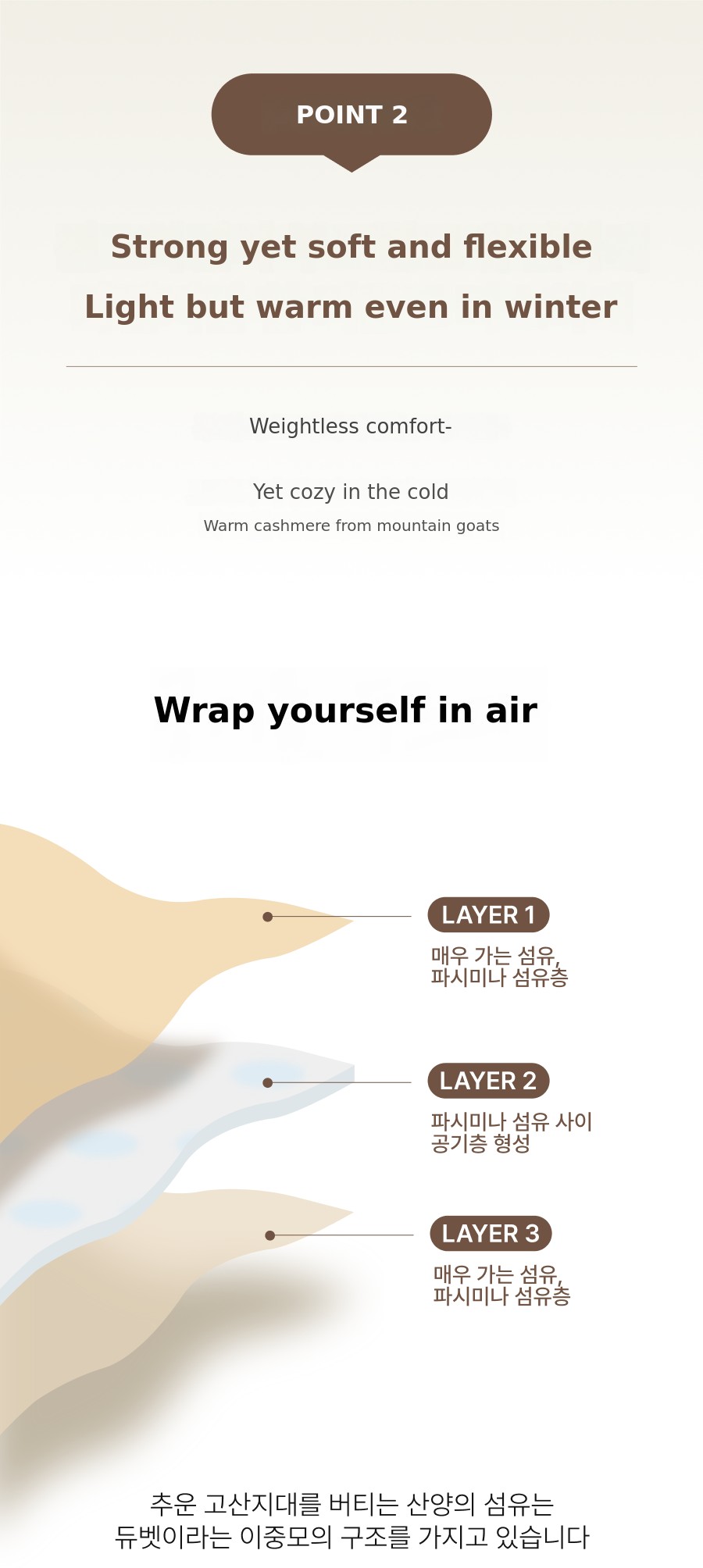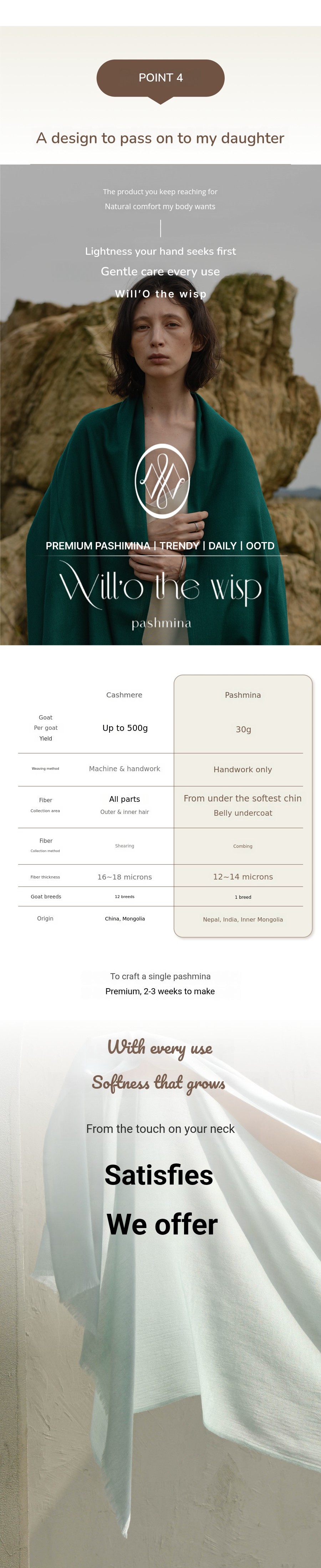 In 2022, during a long trip to Turkey and Georgia, I first encountered pashmina fiber and realized that there were hardly any brands handling pashmina in Korea. Wanting to introduce this wonderful fiber to Korea, I researched diligently and found that the best quality pashmina is produced in the Kashmir region of Srinagar, India. The following month, I visited a workshop in Kashmir that produces the highest quality pashmina and began this journey.