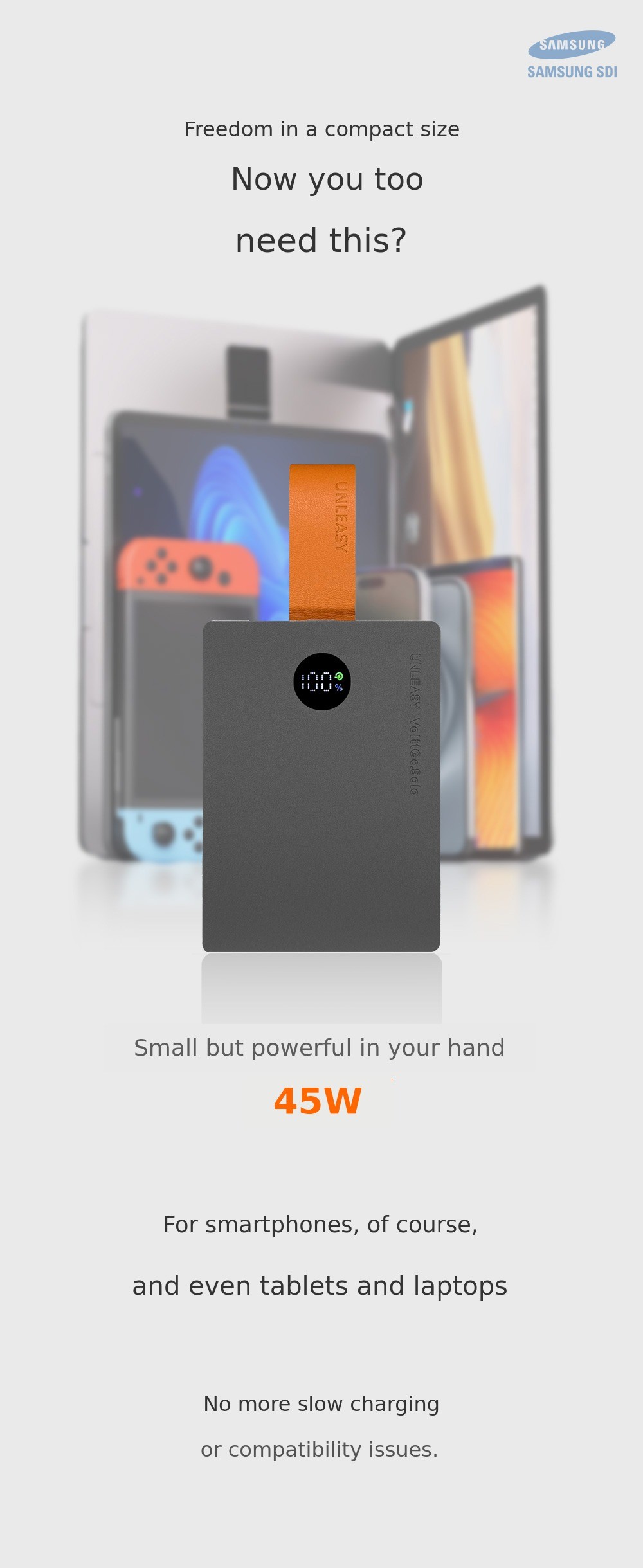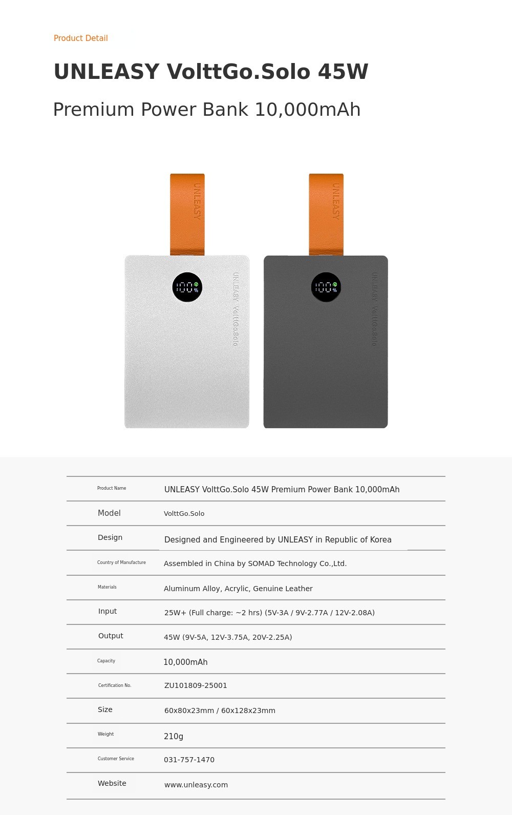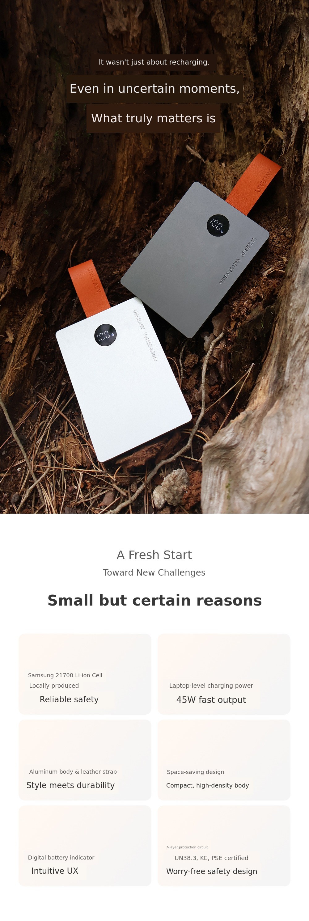 1. π 45W High-Power Premium Power Bank - Compact yet powerful 10,000mAh Samsung SDI cell for fast charging 2. βοΈ Aircraft-Grade Aluminum Body - Enhanced durability and safety with elegant leather strap design 3. π Limited Quantity and Special Package - Reliable product designed in Korea and manufactured in China