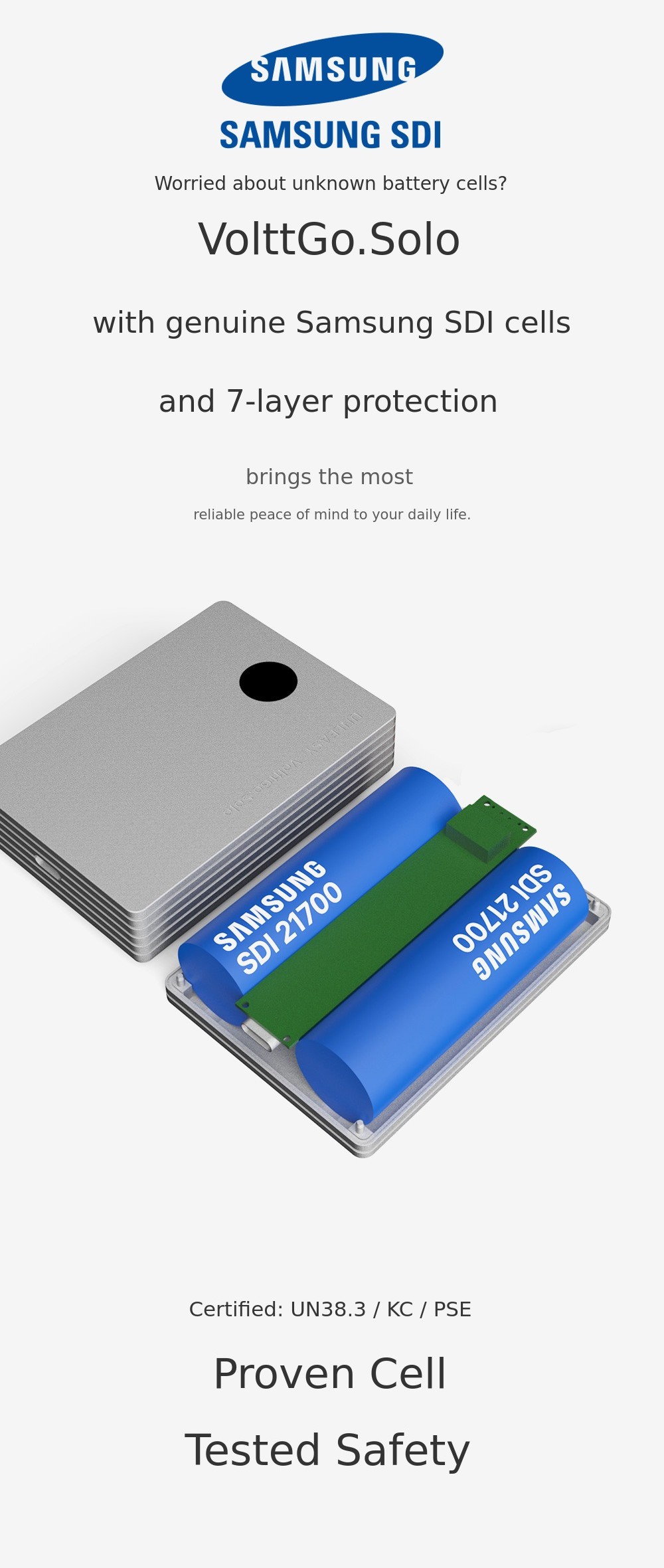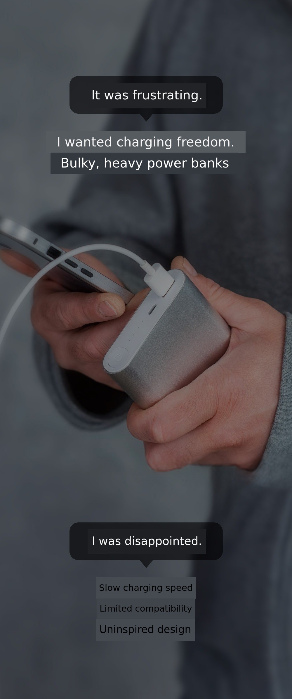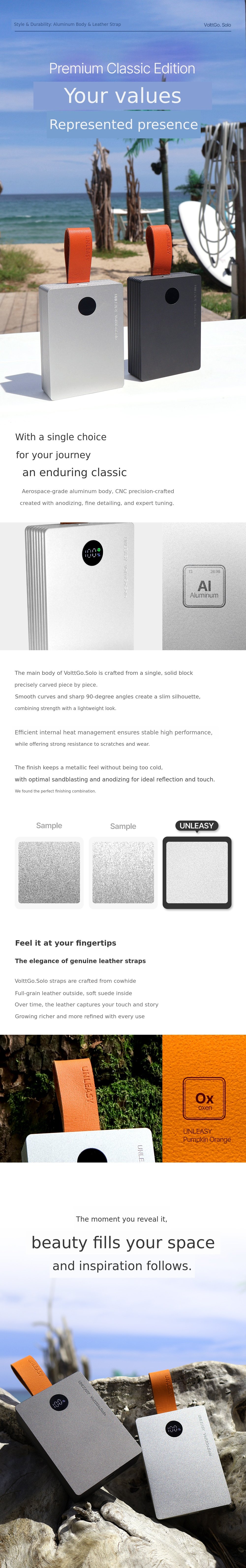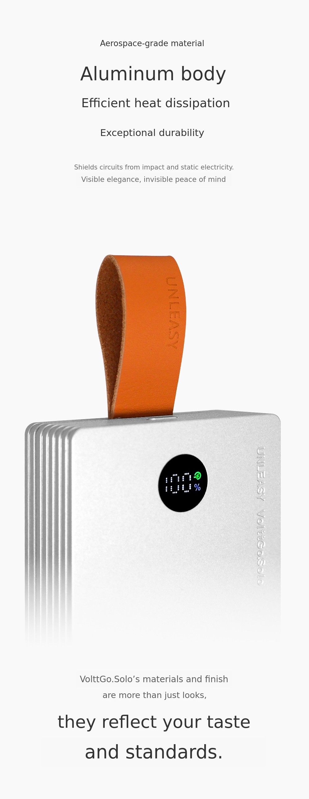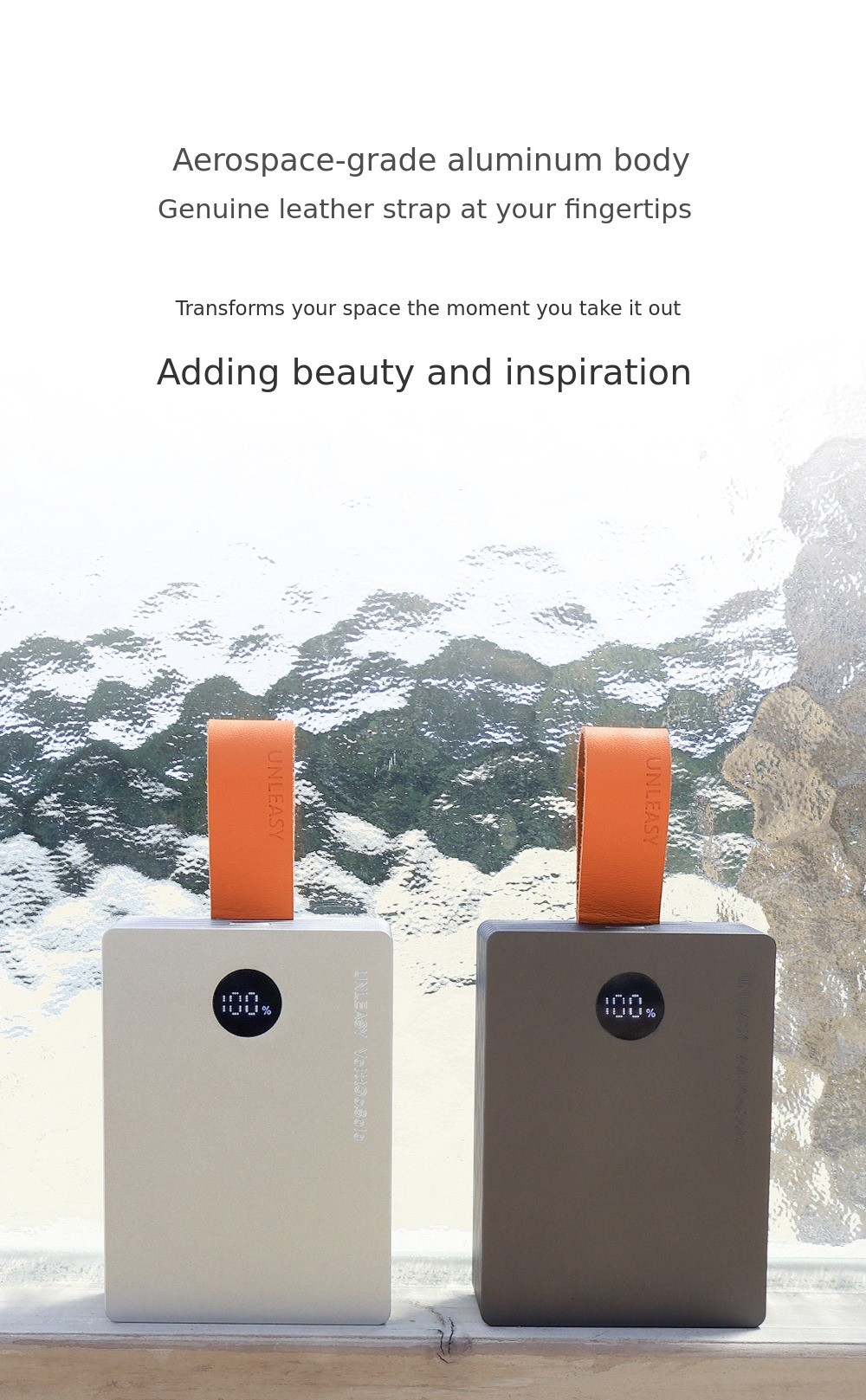 A premium power bank that fits in one hand featuring aircraft-grade materials for safety and durability.