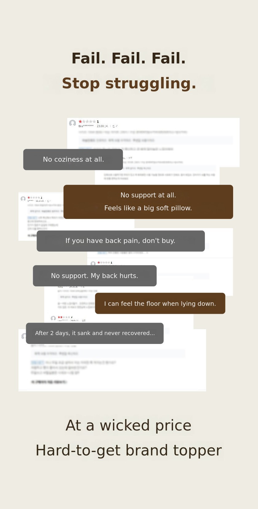 - Topper only: Please select this option if you will use the topper alone. Available in two colors: white and brown beige.