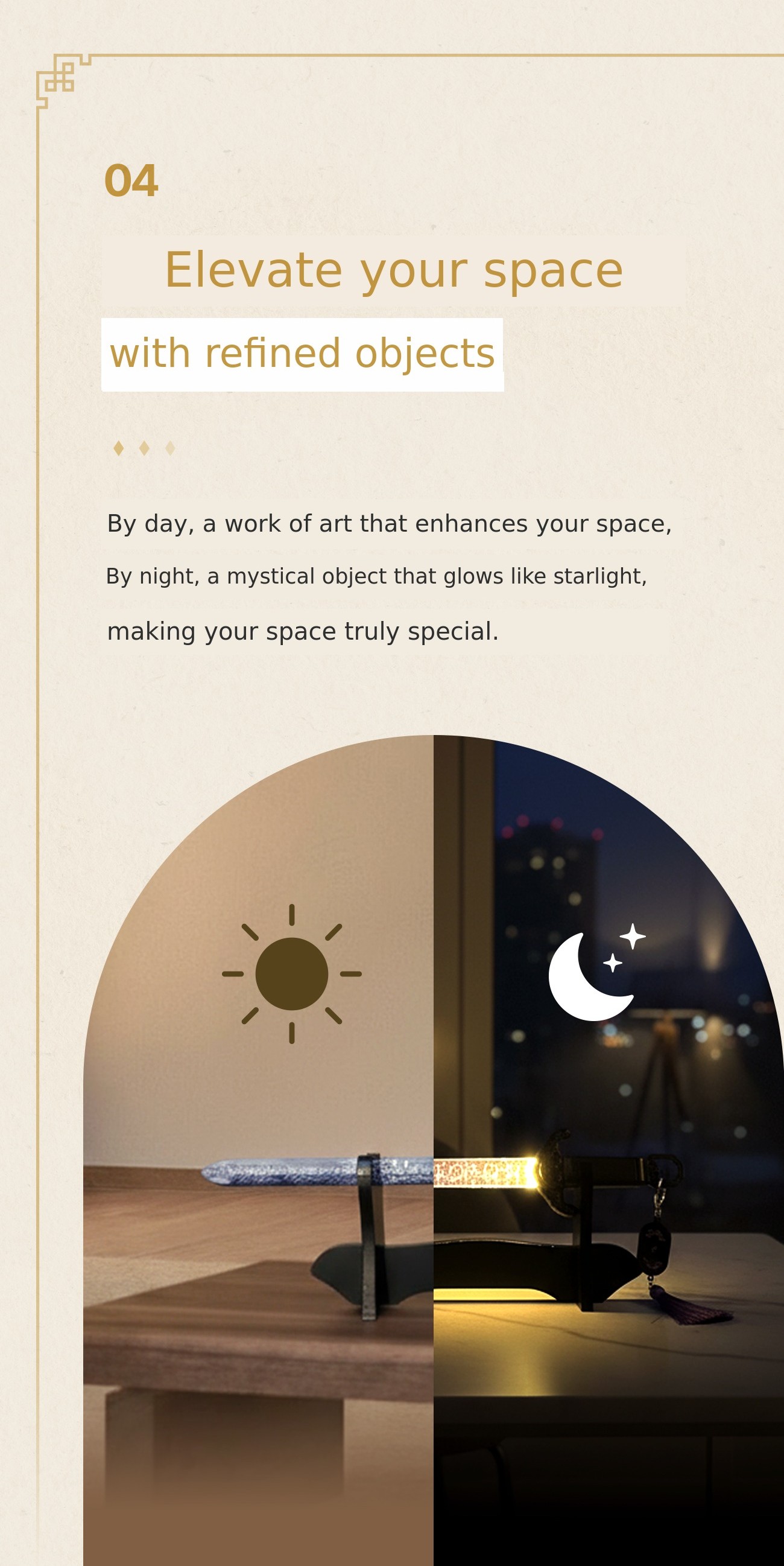 The Saingeom is a sword that was crafted during the Joseon Dynasty for the peace and prosperity of the royal family, made in the year, month, day, and hour of the tiger, and infused with the spirit of the tiger. This sword has recently been reinterpreted as the weapon of a protagonist in K-pop content, gaining worldwide popularity. Even Emperor Gojong had one made, and the original form of this Saingeom is preserved at the Underwood Memorial Hall at Yonsei University. I wanted to reinterpret the shape of the Saingeom as a lighting and interior accessory. It is said that those who possess the Saingeom are blessed with peace and well-being, and as the Saingeom is now spotlighted as a K-Culture item worldwide, I hope many people can own it and find joy in it.