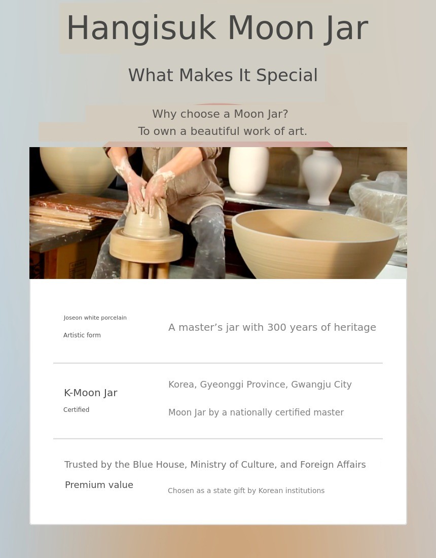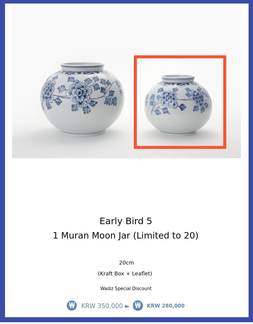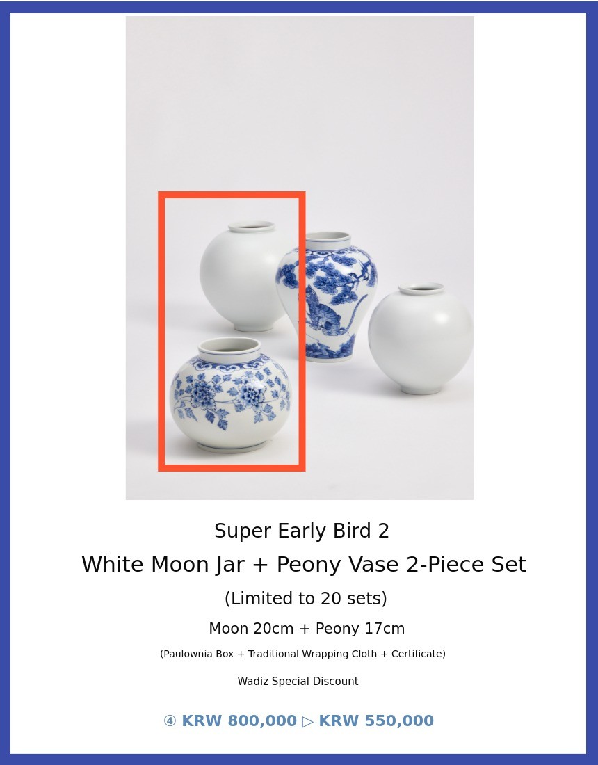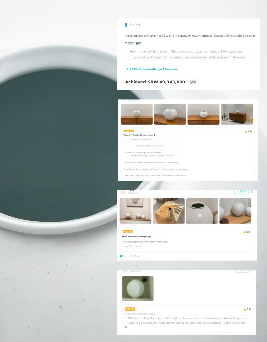 In this funding, we are presenting the Baekja Moon Jar, which was loved by many supporters last year, in a pre-order format. As it is a limited quantity, we chose the Wadiz platform to create the best synergy, and we have worked hard to provide the greatest benefits to our supporters.