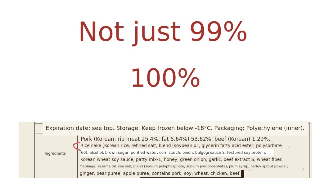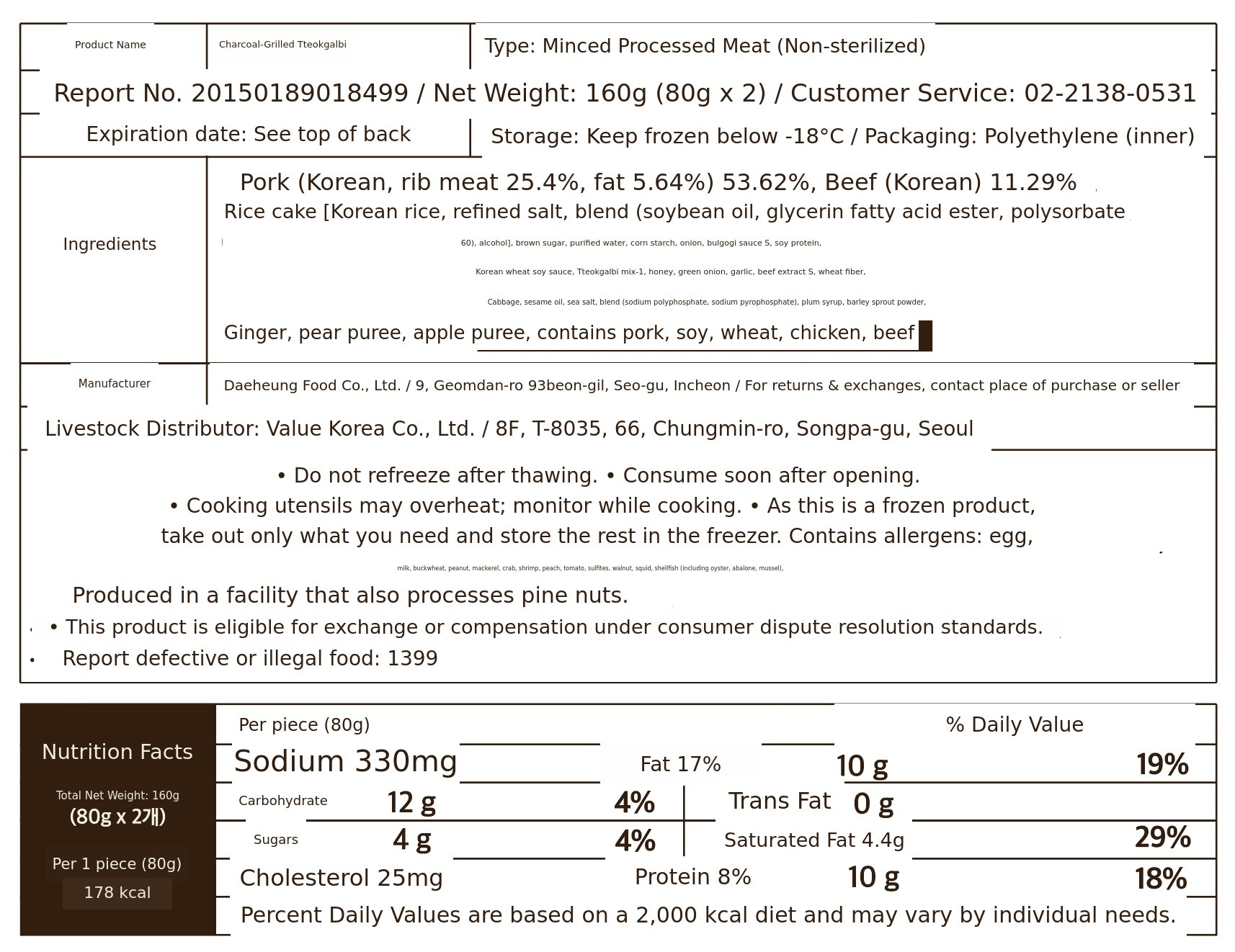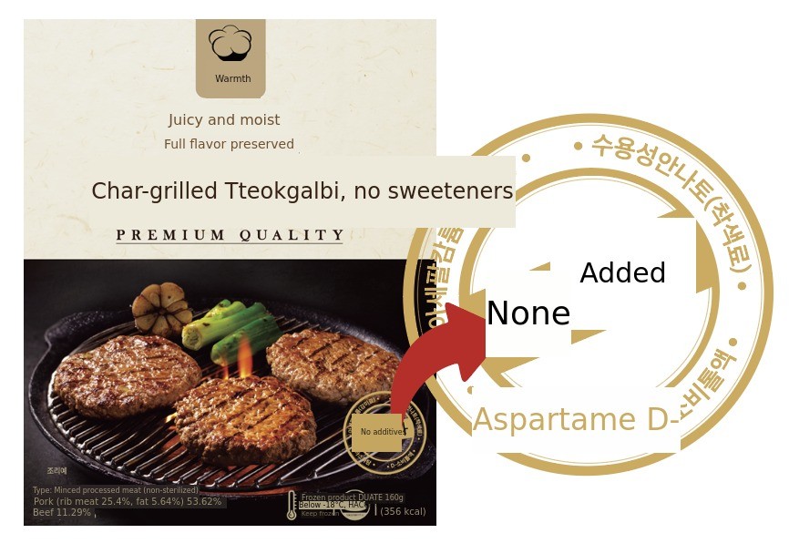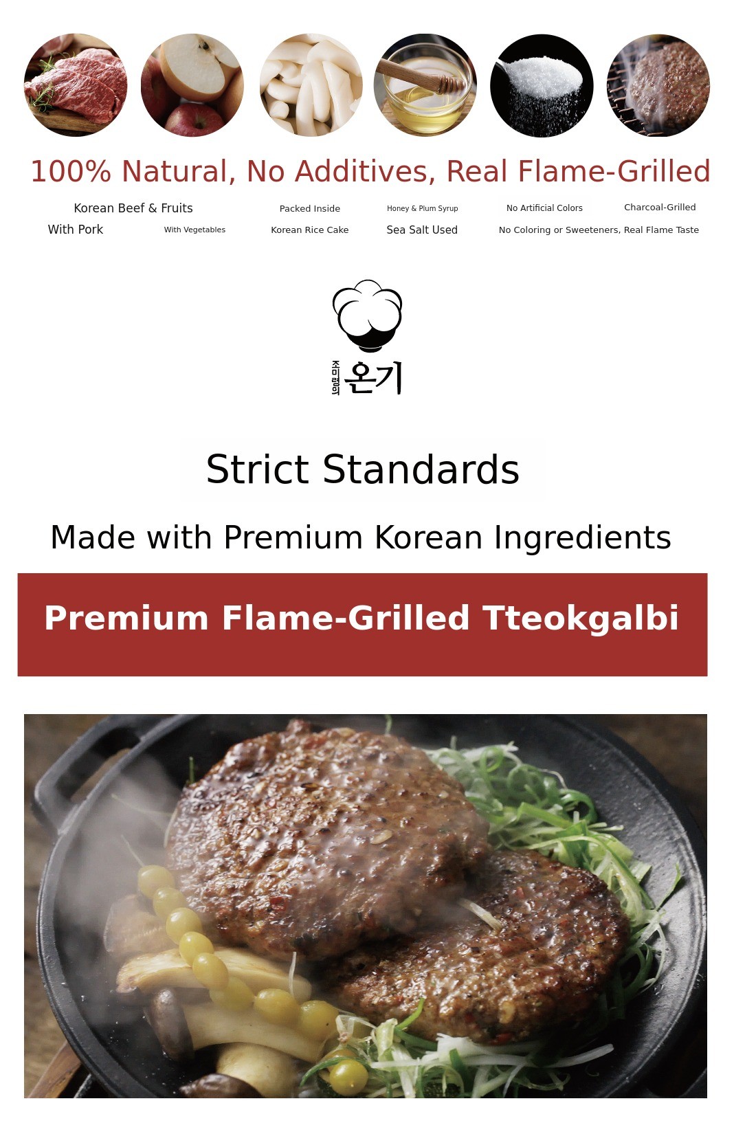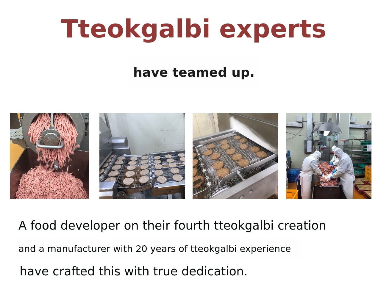 Check the package as well. We preserved the natural color of the raw ingredients instead of using artificial coloring. We created a natural sweetness with plum syrup and honey instead of artificial sweeteners. Our charcoal-grilled tteokgalbi is a healthy dish that reduces digestive discomfort such as diarrhea, making it enjoyable and safe for the whole family, from children to adults.