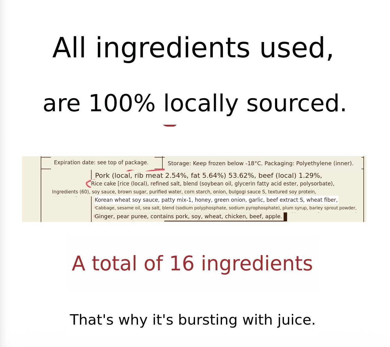 Every single ingredient, without exception, is 100% domestically grown in Korea. From the very beginning, we only considered using domestic ingredients. Shall we see how many domestic ingredients are included?