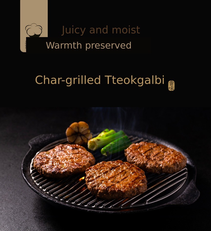 Charcoal-grilled Tteokgalbi uses only natural ingredients for its sweet and savory flavors.
