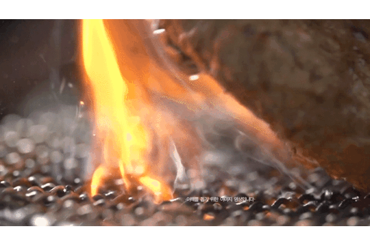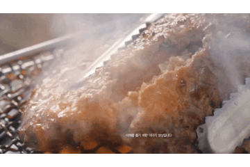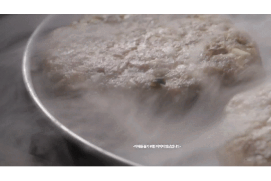 (A gif of placing Tteokgalbi on steaming Hetbahn)