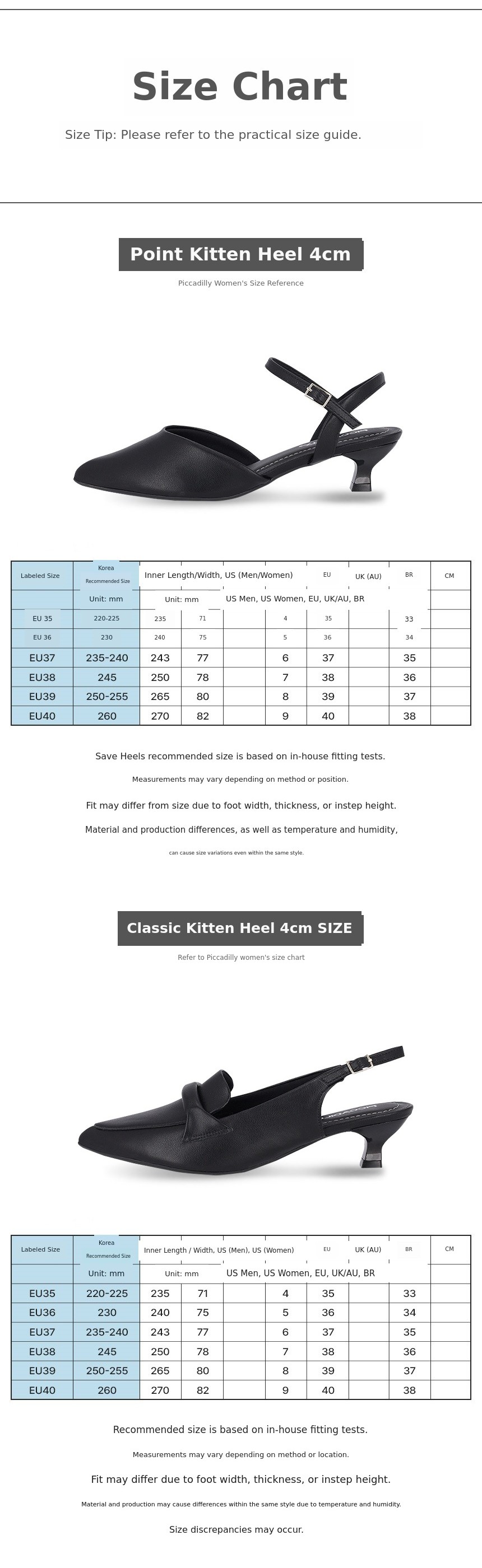 - There may be discrepancies in size depending on the measurement method or location, and the actual fit may differ from the indicated size depending on foot width, thickness, or instep height. Due to the characteristics of the material and production process, size discrepancies may occur within the same style due to differences in temperature and humidity. (The maximum margin of error is within 0.5cm.)