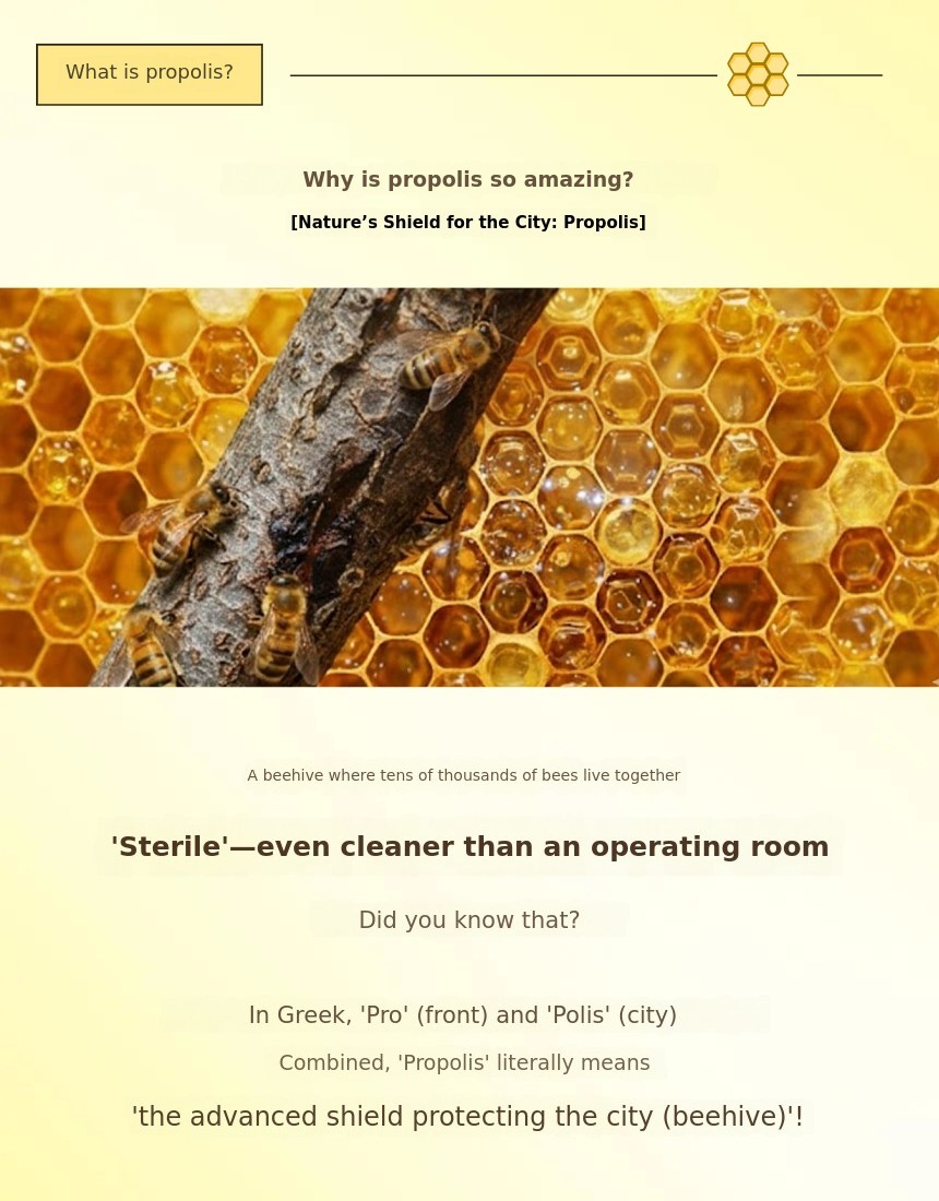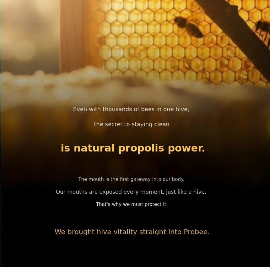 [Identity] The meeting of science and nature, Nature's defensive substance, Propolis, has met its origin, the Bee. PROBEE is a brand that perfects the value of honeybees through science.