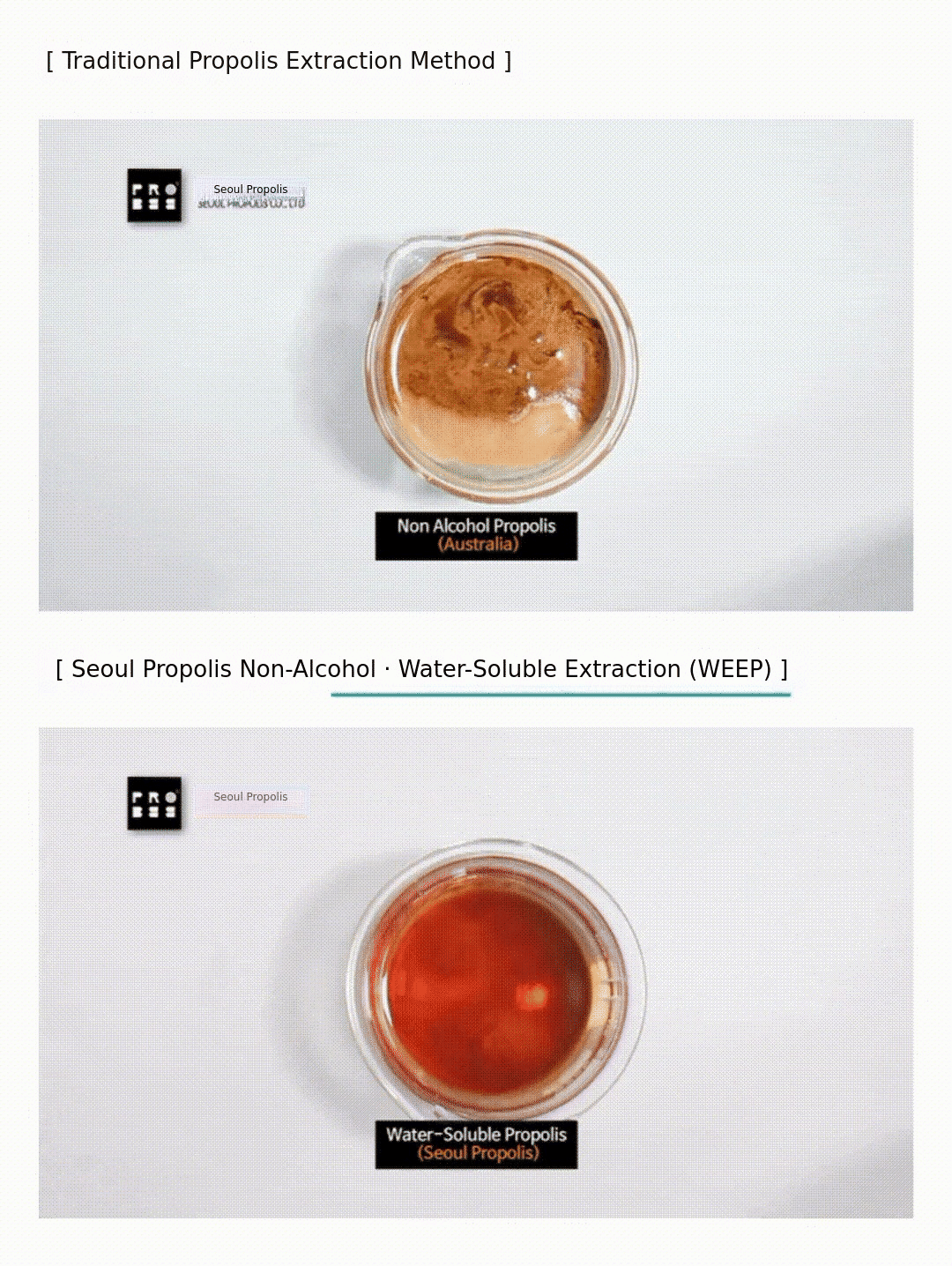 Transparent cleanliness with no residue concerns—experience the overwhelming difference of Seoul Propolis's unique water-soluble propolis!