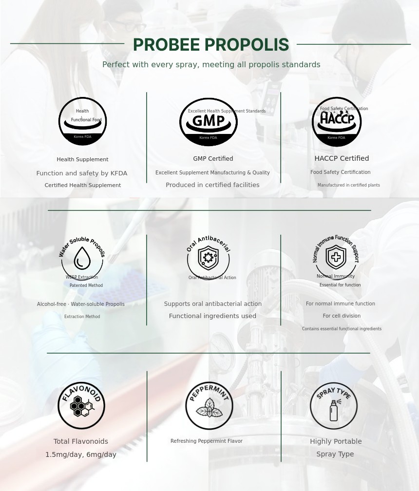 [History] 30 Years, Proven Quality Behind the Scenes PROBEE is a research-based company that has studied only propolis for nearly 30 years. For decades, we have supplied raw materials to domestic and international pharmaceutical companies and global brands, embodying the expertise of a B2B R&D specialist responsible for quality behind the scenes.