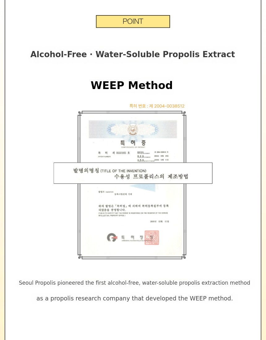 Seoul Propolis, as a GMP and HACCP certified company, adheres to thorough manufacturing and quality control standards.