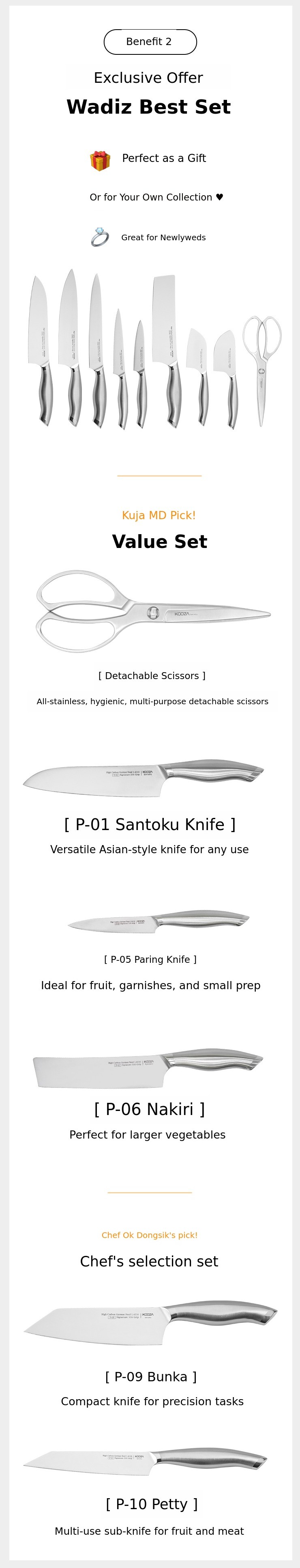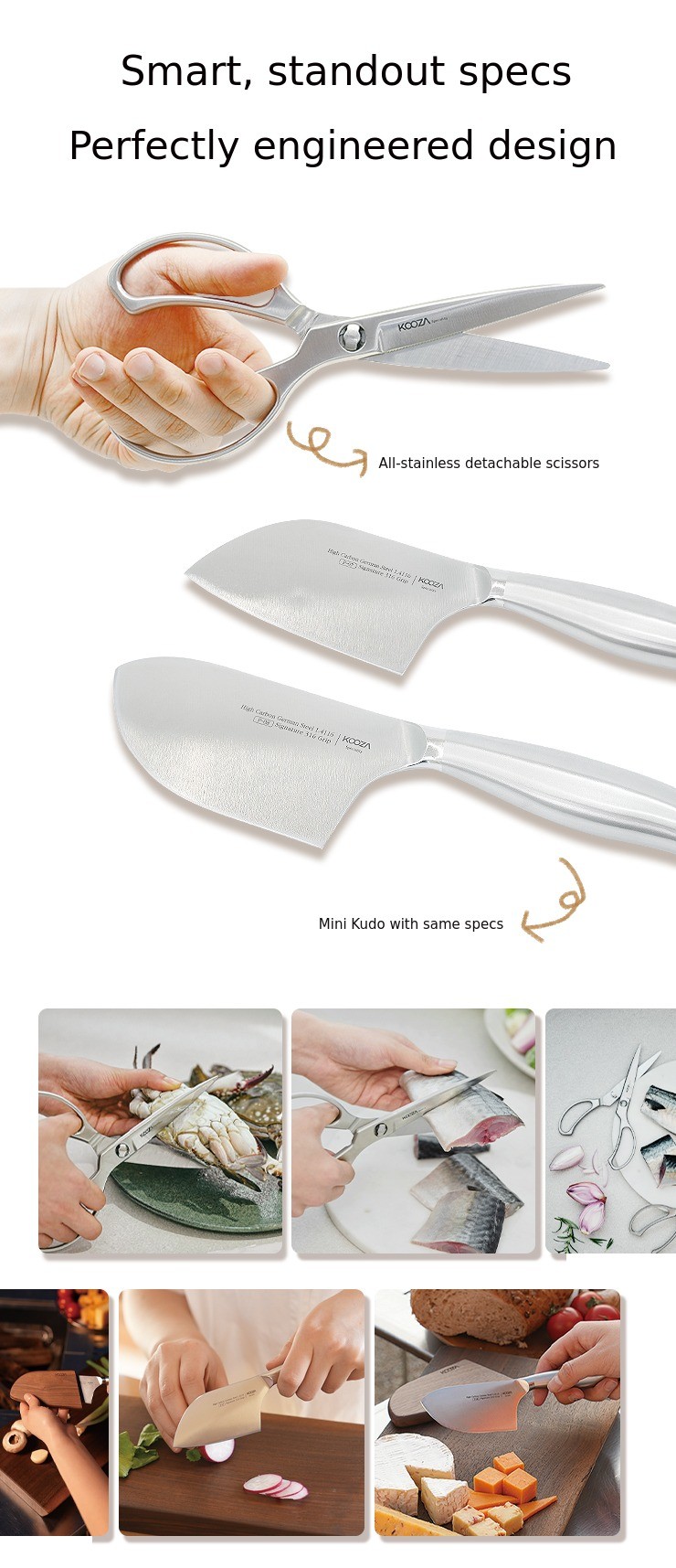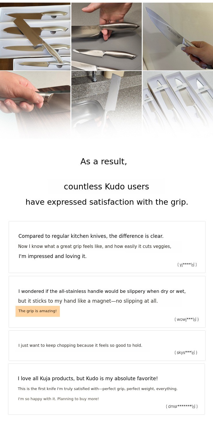 We are pleased to reintroduce the Kudo knife series and scissors, created after much thought and research by [Kooza], the original in stainless steel, also known as 'Stainless King.' True to our reputation as a brand that customers keep coming back to, we continue to develop products from the consumer's perspective. None of Kooza's products are ever made hastily.
