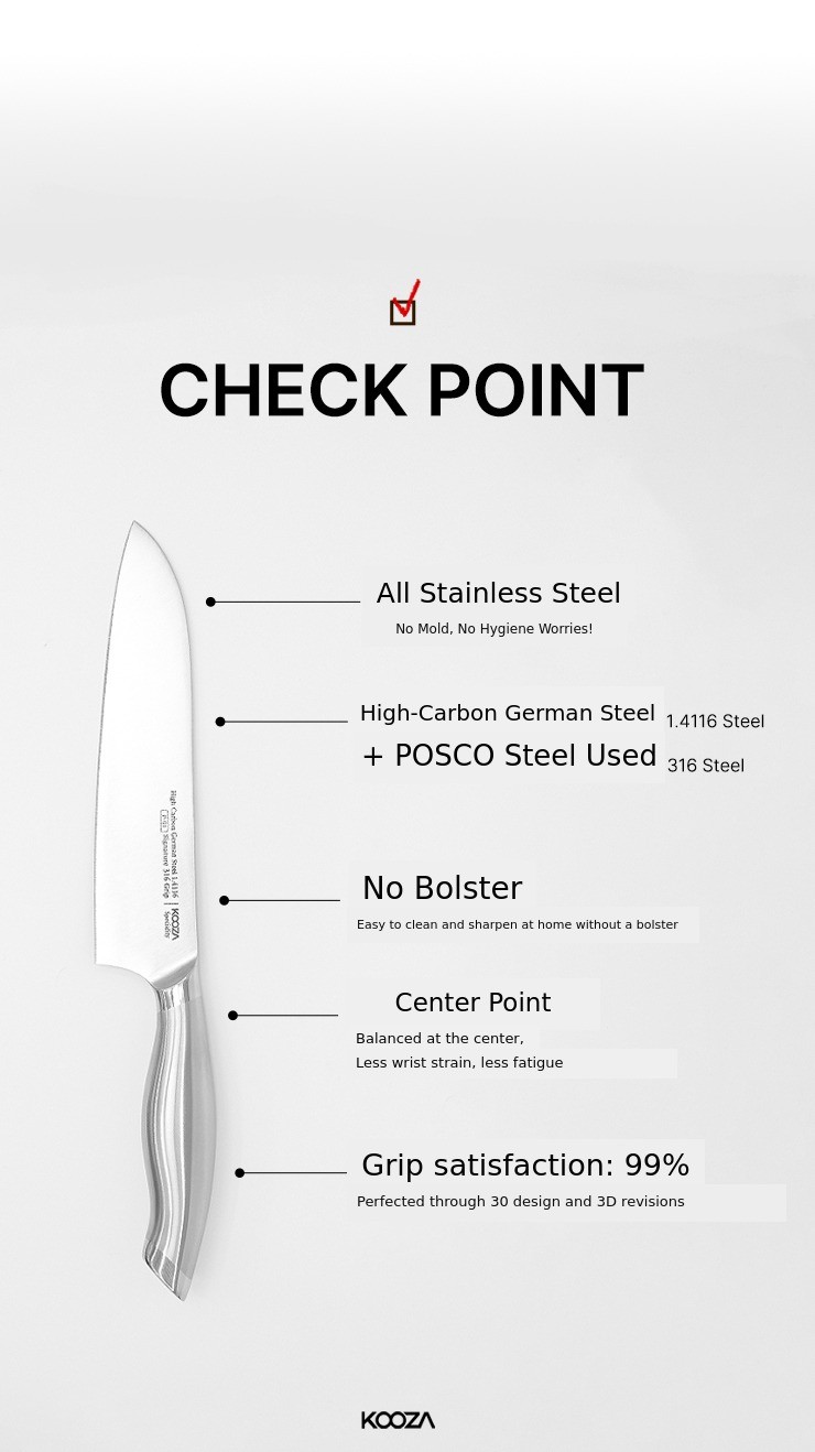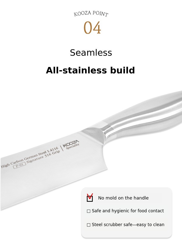 Since knives are the most commonly used tool in the kitchen, they often come into contact with food and water. As a result, even the smallest gaps can lead to rust or corrosion.
