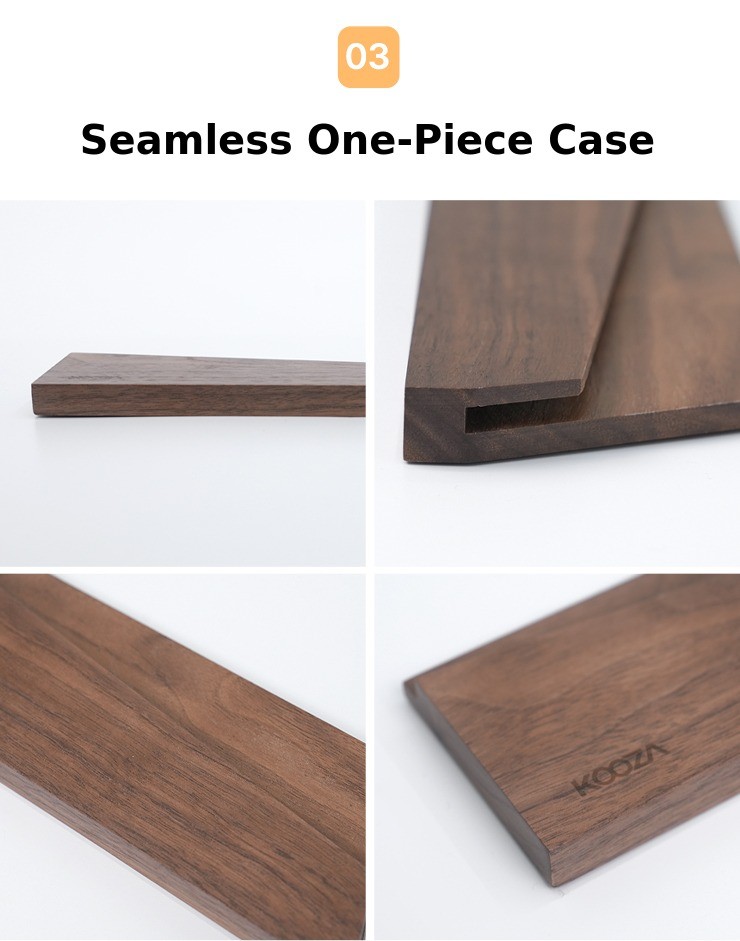 A solid wood case made from North American walnut. Store it together!