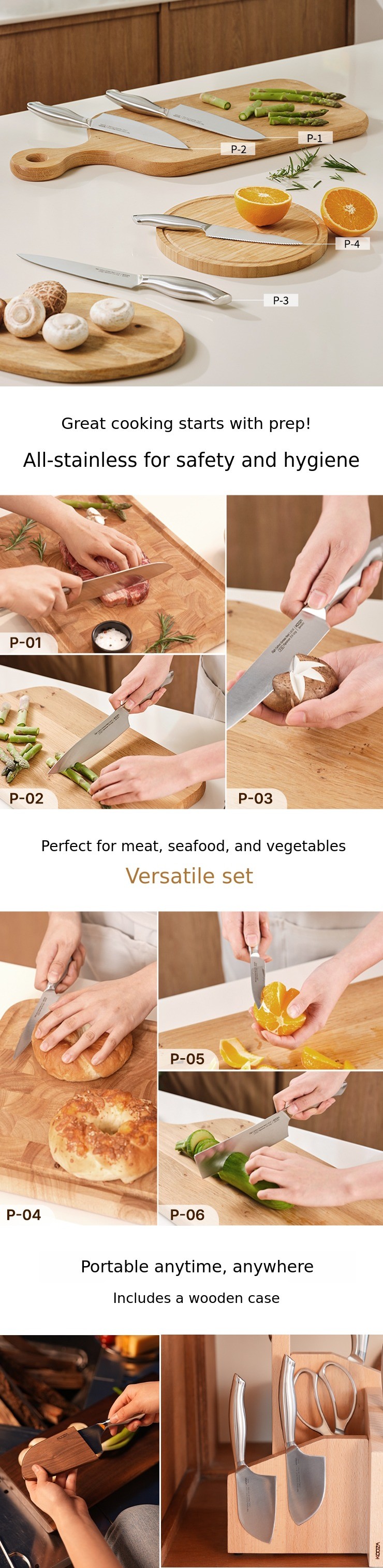 The secret lies in these detailed finishing touches. Now, try slicing not only vegetables but also raw chicken, meat, and fish with ease!