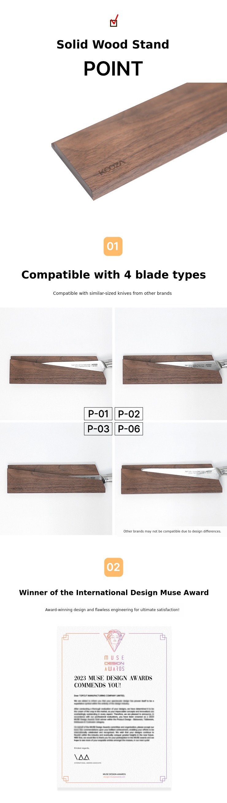 → Except for the P-04, Kudo is a double-edged knife with blades on both sides, making it suitable for both right- and left-handed users.