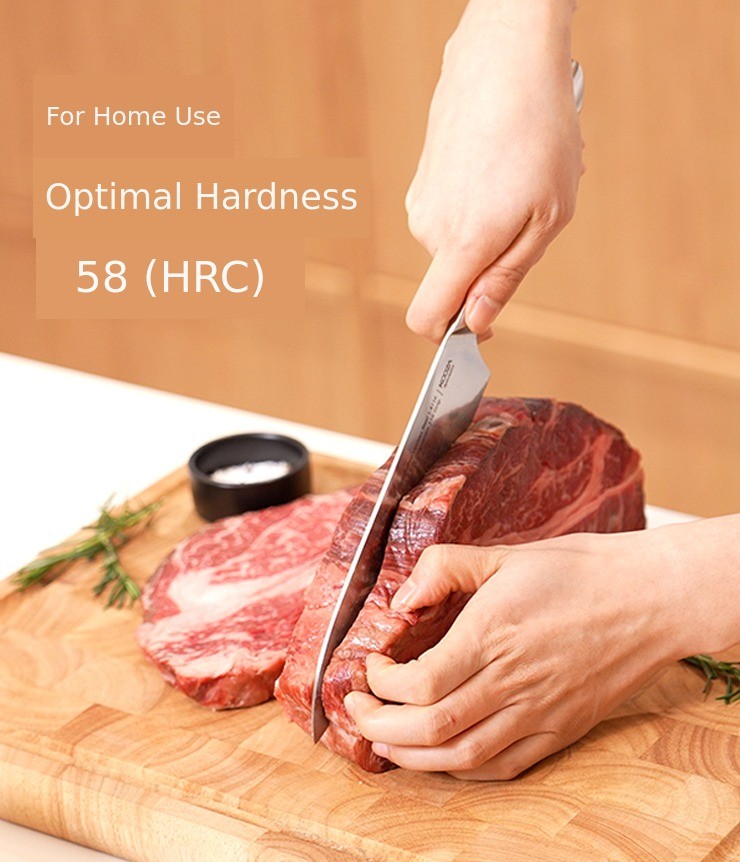 Hardness simply indicates how well the cutting power is maintained. If the hardness is too high, the blade may chip, and if it is too low, the blade dulls easily. Also, good hardness can only be achieved with quality materials and advanced technology.