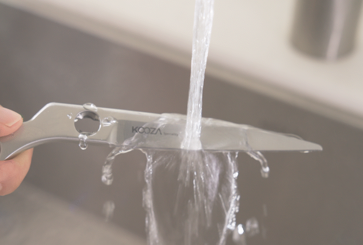 → Kudo is an all-stainless product, so it can be fully sterilized with boiling water from the blade to the handle. Please make sure to dry it completely after sterilization before storing. If you add baking soda during boiling, use only pure baking soda (not mixed with other ingredients), about one spoon, and boil for 5-10 minutes. Please note that using too much baking soda or boiling for too long may cause the product's shine to fade.