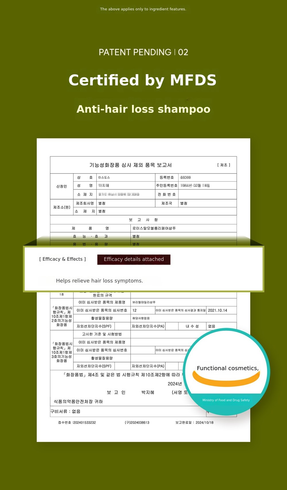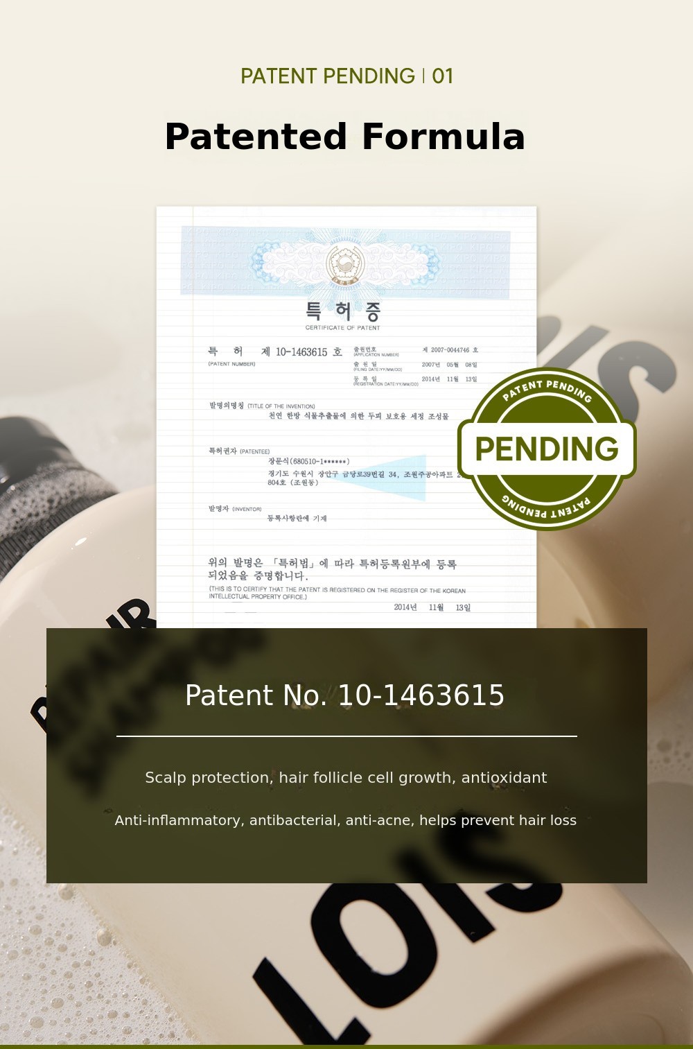 Certified by the notoriously strict Patent Office and Ministry of Food and Drug Safety