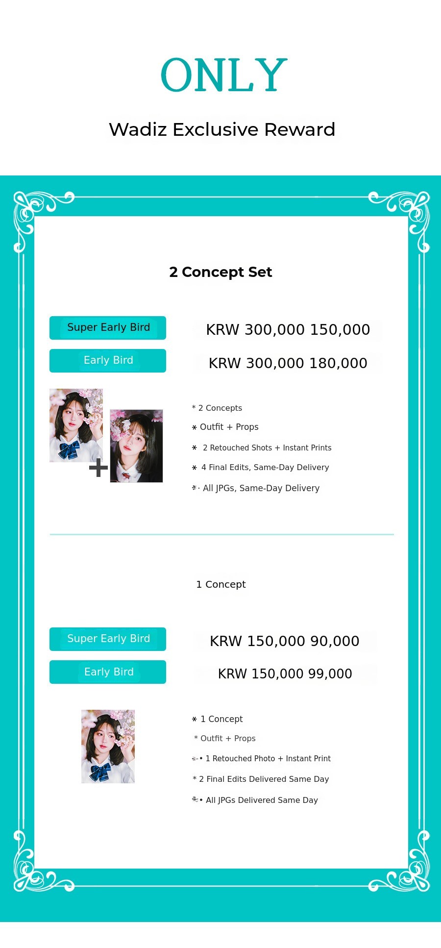 - Two edited cuts (per concept) + all original photos provided.