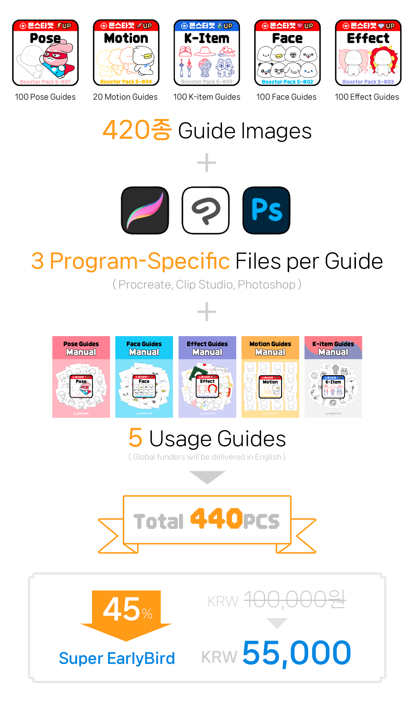 (You can draw even more easily by using Emoticon Booster Series #01 Pose Guide)