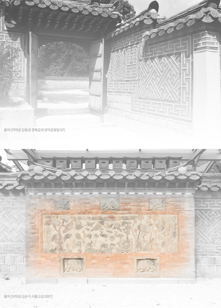 In particular, Korean floral patterns are used with roof-end tiles or