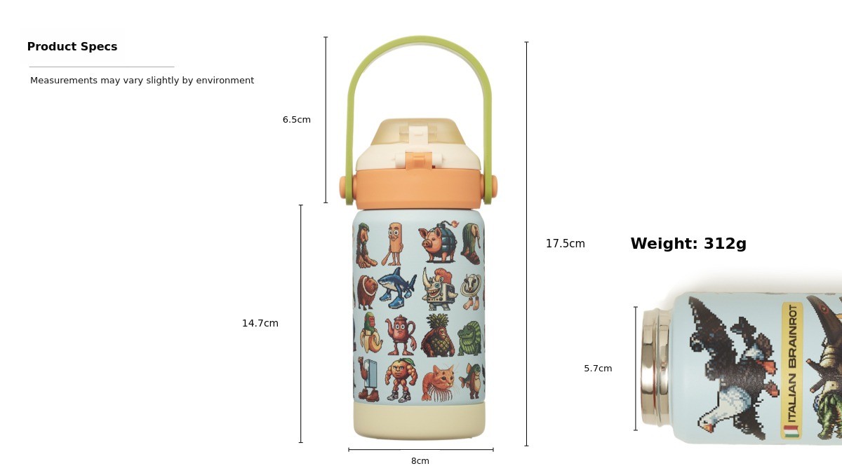 We have prepared the most practical 12oz (340ml) product for our elementary school friends. Of course, it is BPA free, meaning it is made from healthy materials free from the chemical Bisphenol A.
