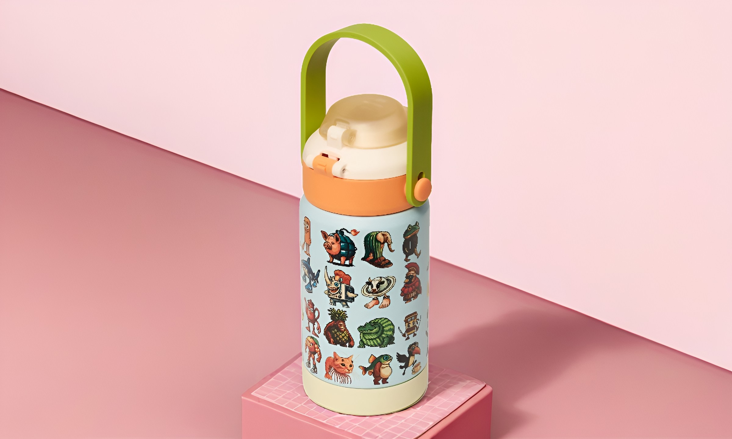 With a dual hybrid structure, you can drink through a straw or sip directly, allowing children to choose their preferred drinking method at any time. This method has received a U.S. design patent. Plus, the lid has a handle for excellent portability!