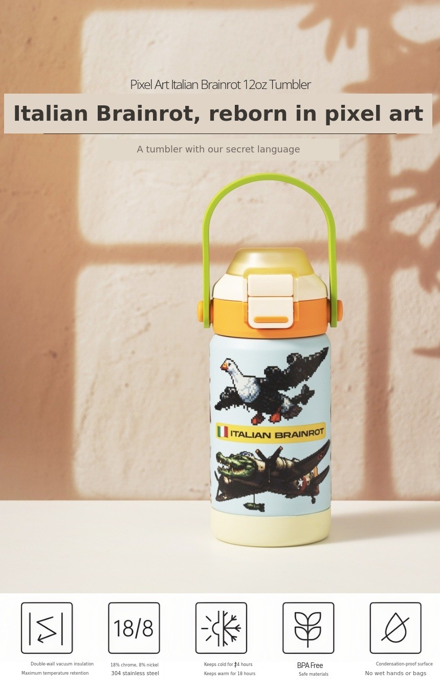 Brainrot friends reborn in pixel art have arrived in a 12oz tumbler!