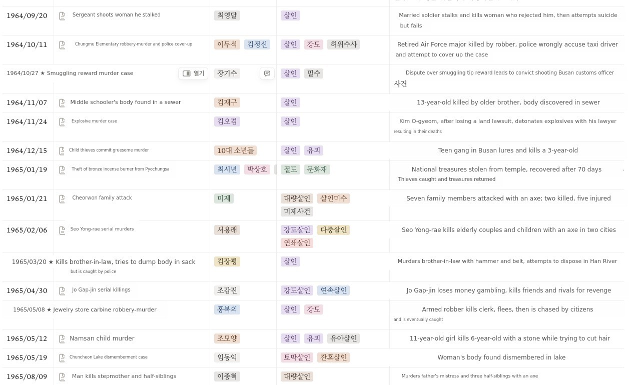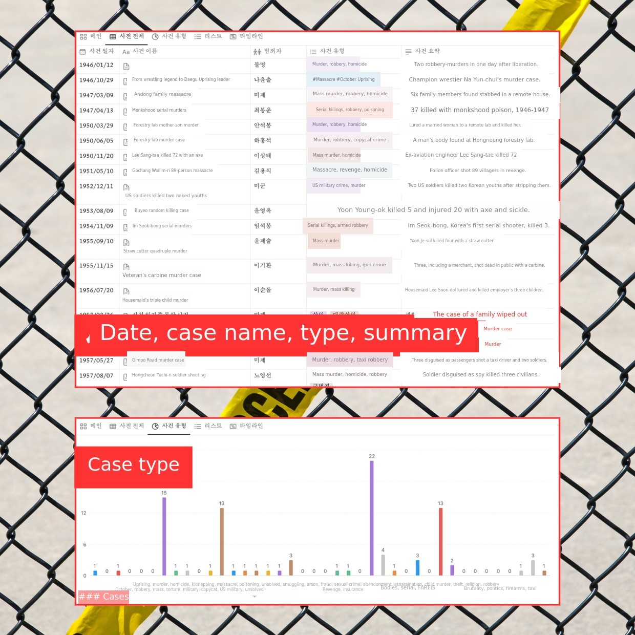 Arcplot has collected crime cases that occurred in Korea from 1945 to 2000, spanning more than half a century. It was a grueling task. It was horrific, brutal, and heartbreaking.