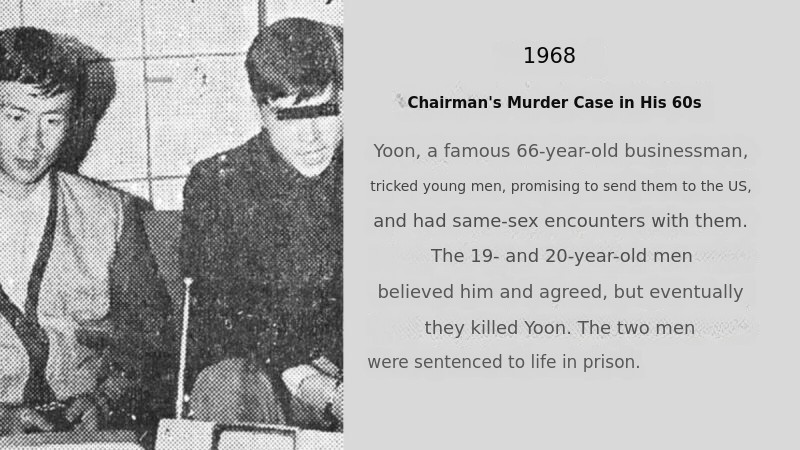 Among the murder cases from 1945 to 1980, one type that was widely reported in the media involved murders due to adultery or inappropriate relationships. Murders did not occur only in adulterous relationships. Crimes of passion were also frequent. There were cases where an elderly person sexually exploited young men and was eventually murdered, or a young man who was treated as an adopted son had relations with the wife and was killed by the husband. Desire was always a major motive for murder.