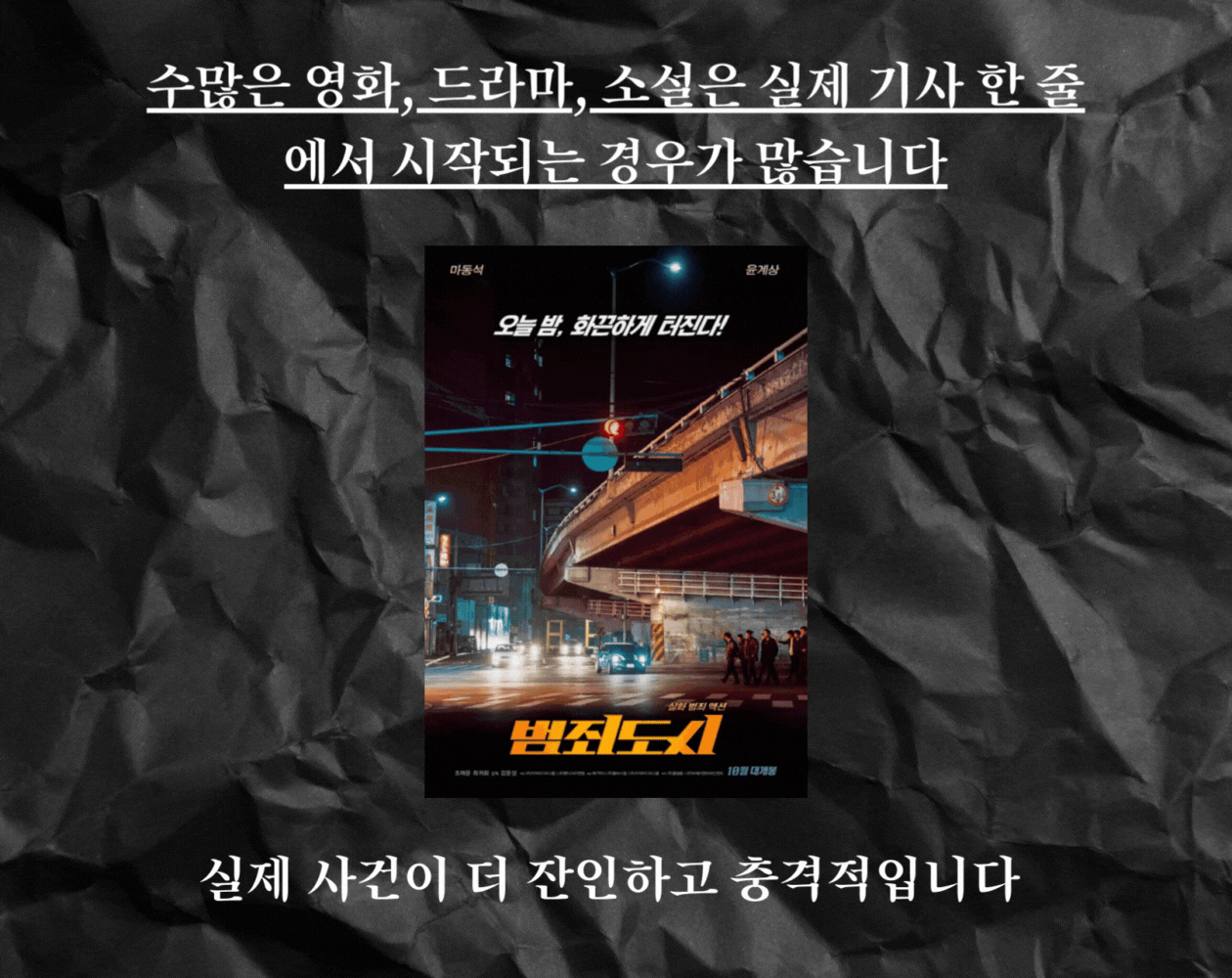 <Catch Me If You Can>, <Dark Figure of Crime>, <The Outlaws>, <Zodiac>, <Silmido>, <Silenced>, <The Case of Itaewon Homicide>, <Voice of a Murderer>, and many more
