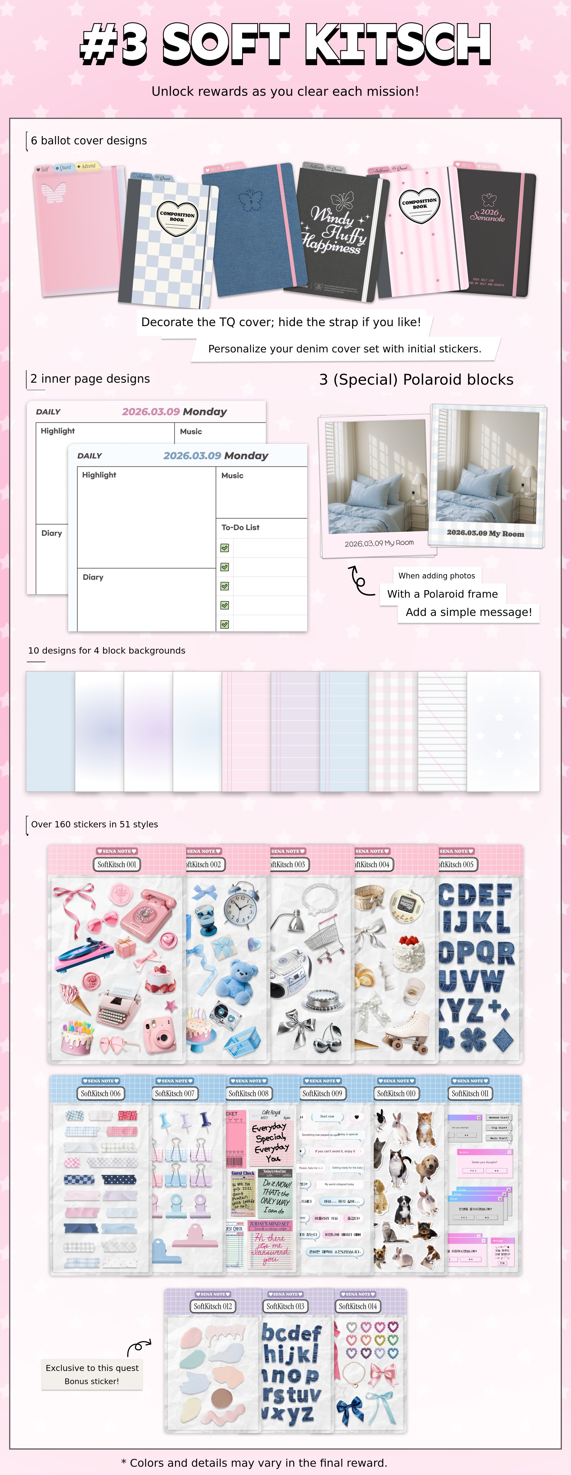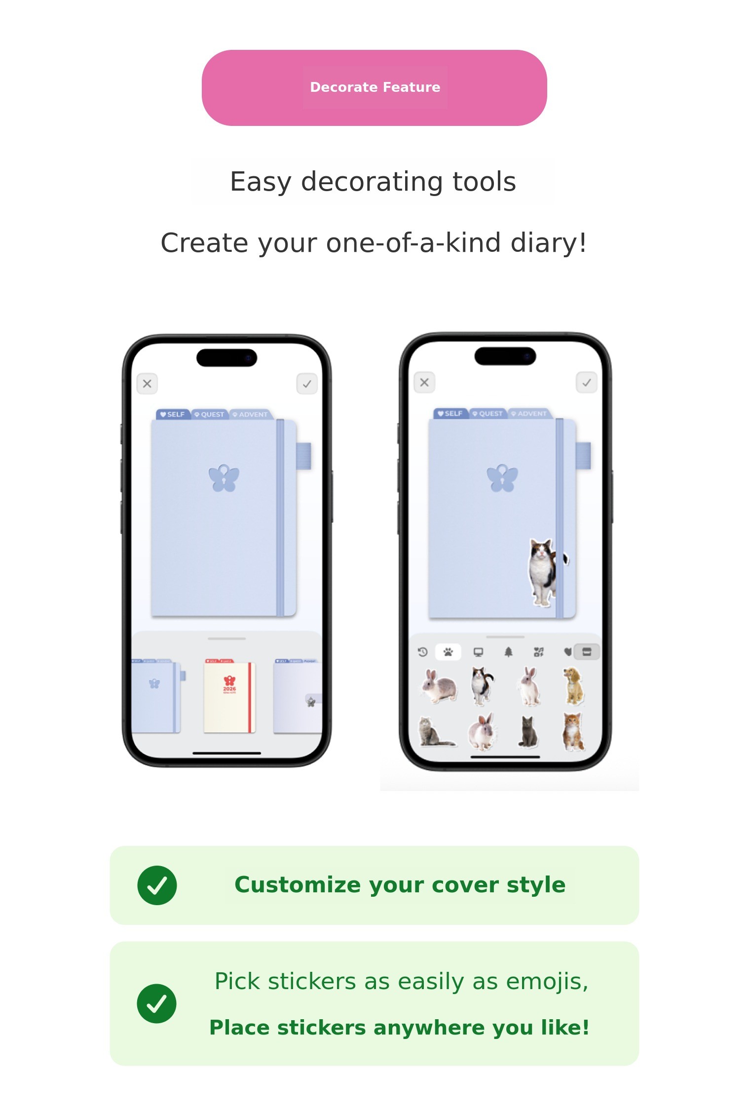 โ ย Diarypages as well as the cover can be decorated in your desired style.