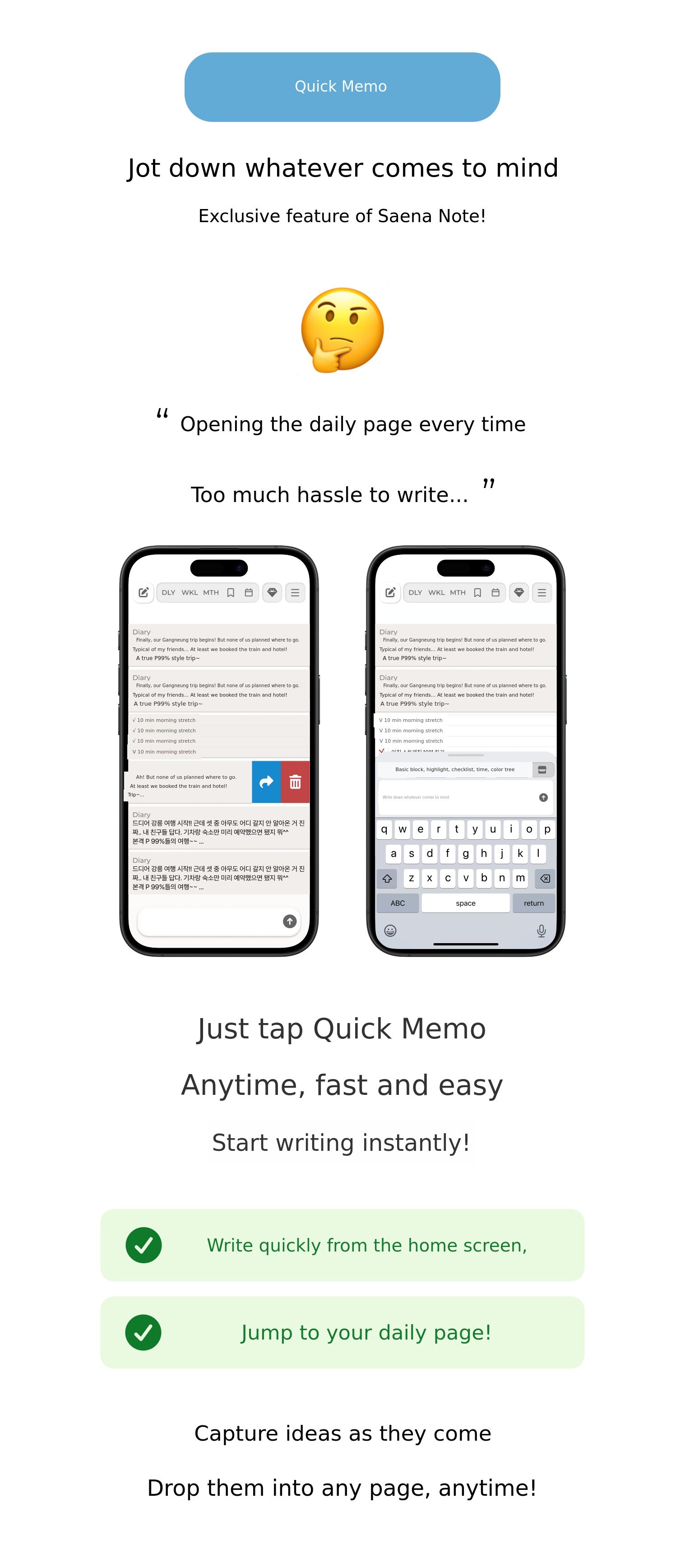 โ ย You can make a memo right away without entering the daily page.