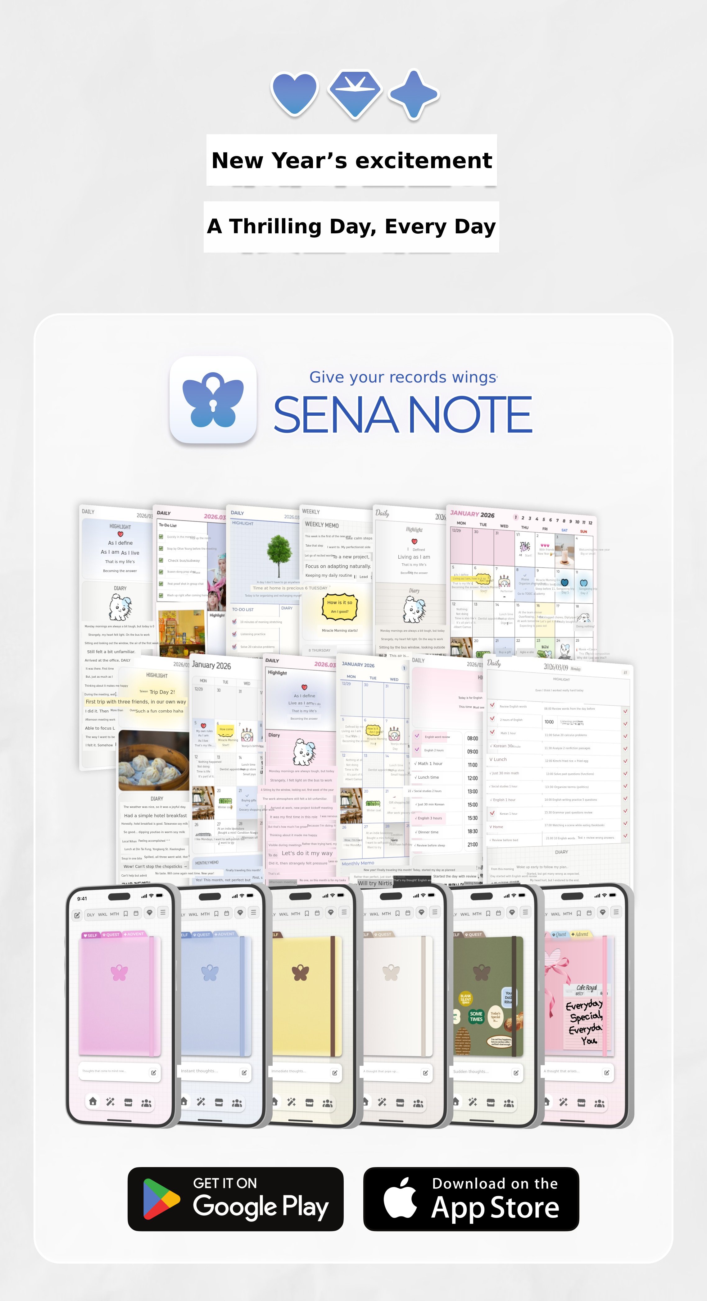 โ ย ย On days when you don't feel like decorating yourself, just press the shuffle button and a beautiful diary will be completed.