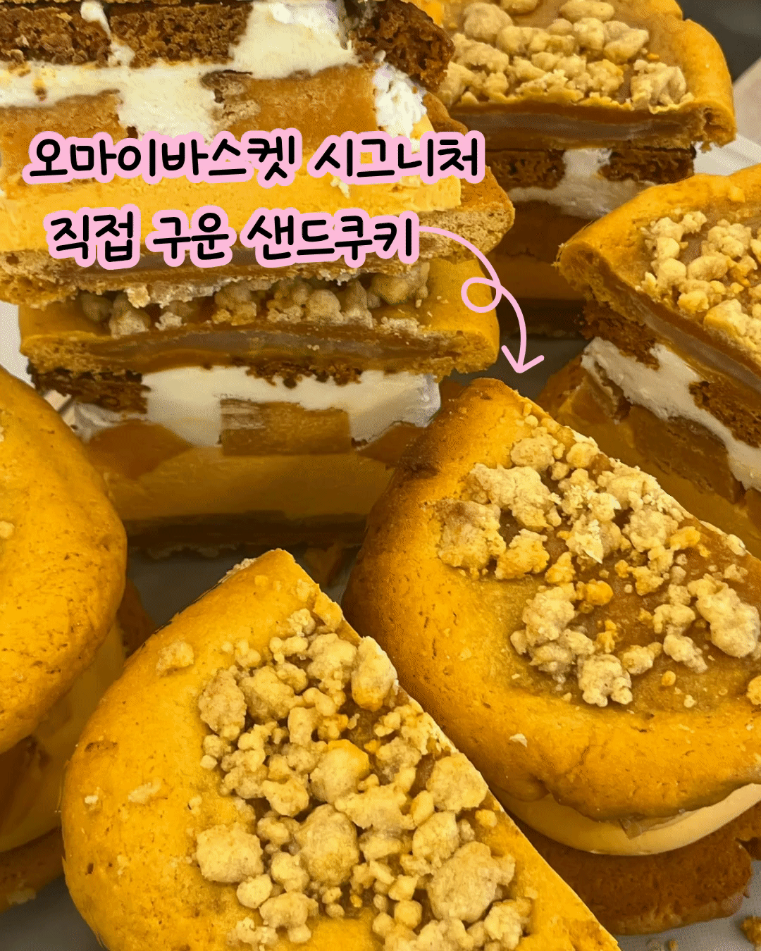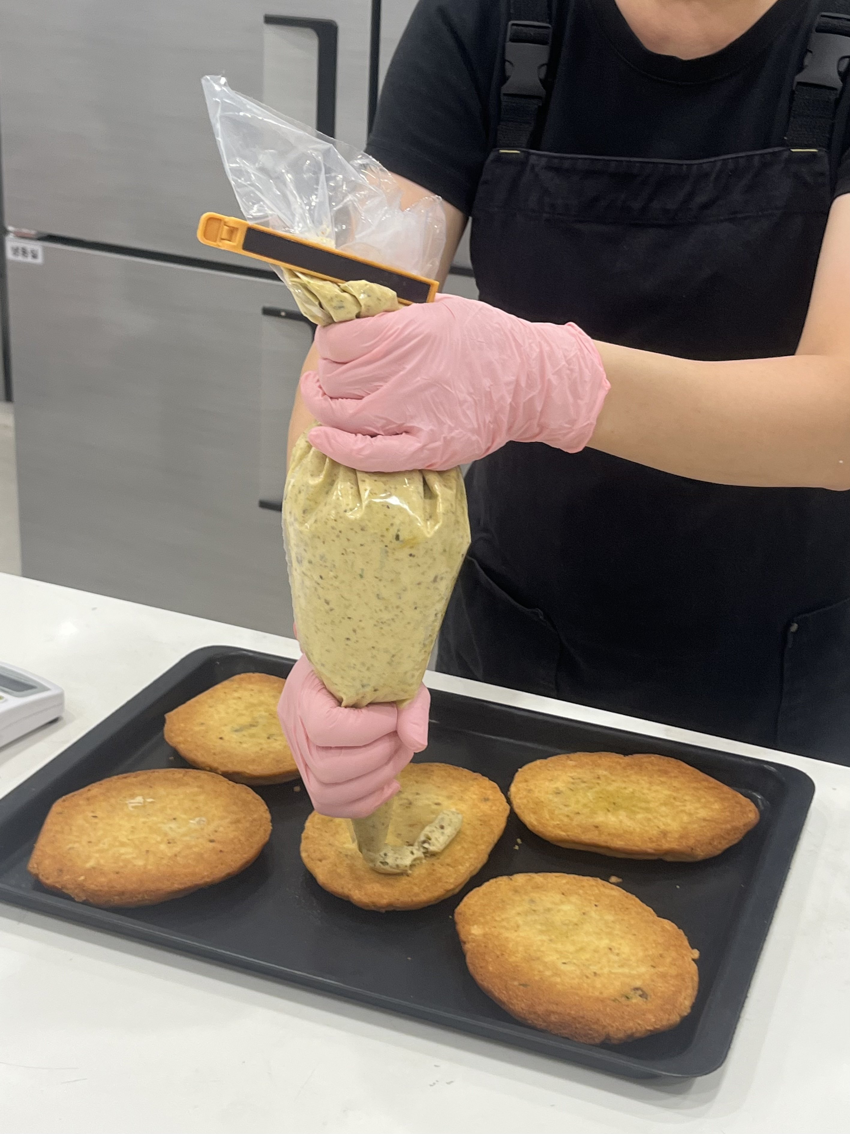 Oh My Basket insists on filling crispy cookie sandwiches with thick filling!