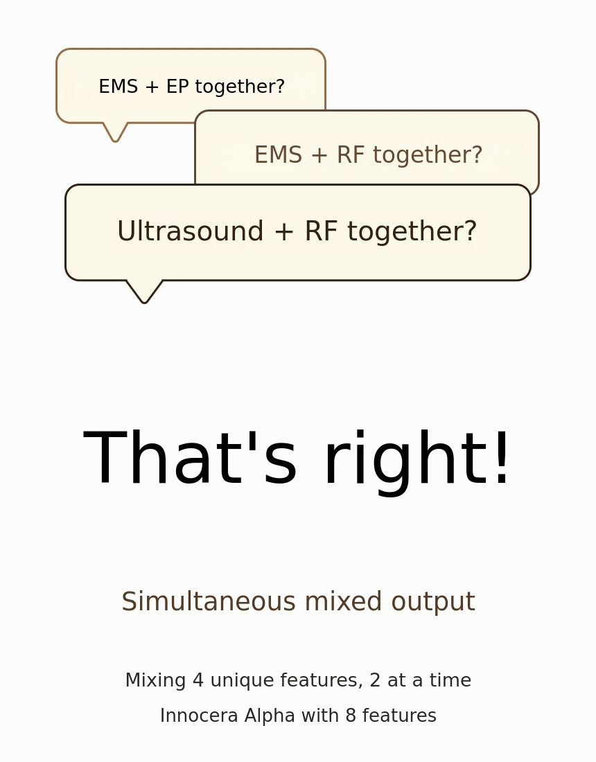 INNOCERA Alpha isDroplet ultrasound, RF, MF EMS, electroporation, IR LED