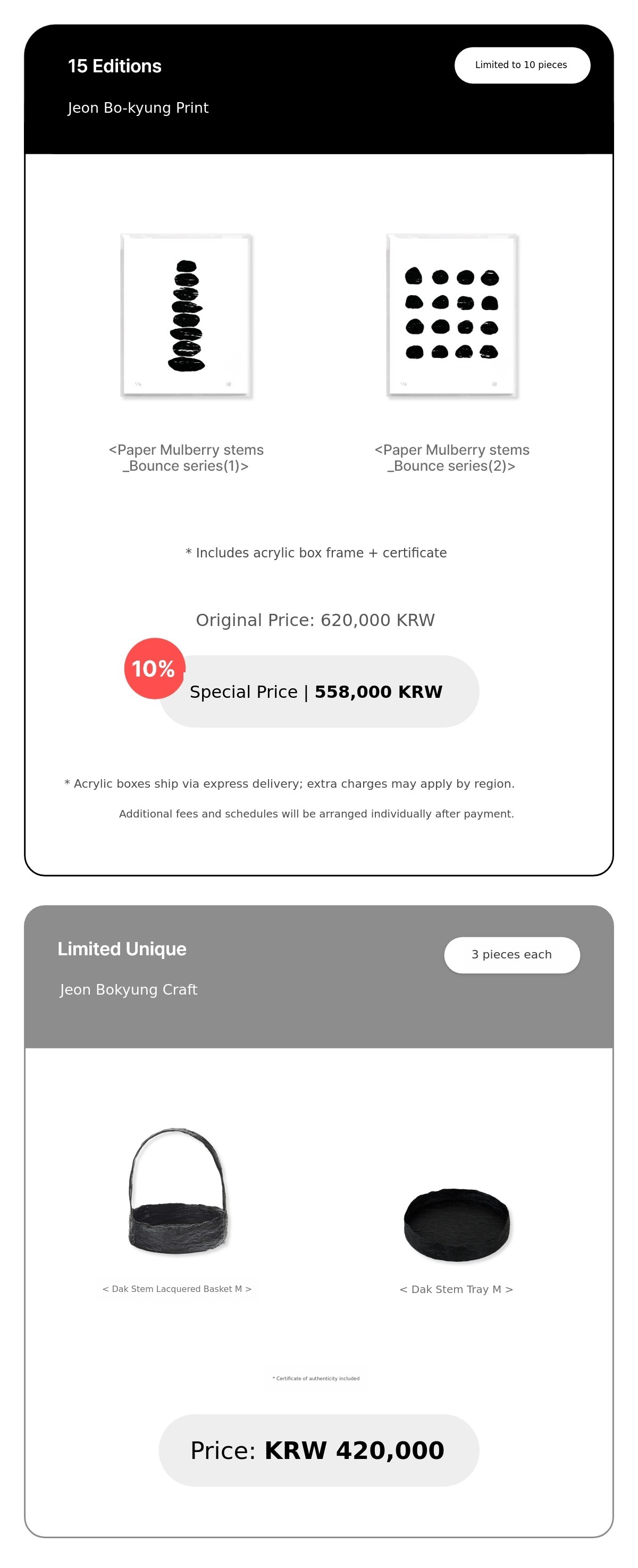 - A5. For Jeju Island and other islands or mountainous regions, an additional shipping fee of 3,500 KRW will be charged. After the final project payment, we will contact the relevant supporters individually to provide the bank account information for direct deposit.