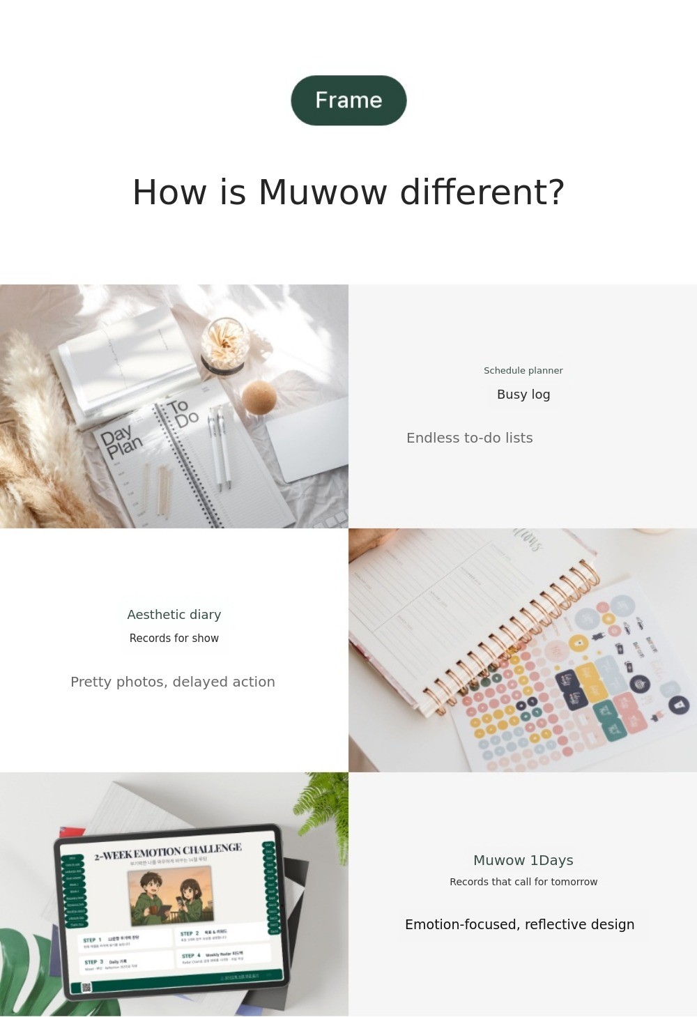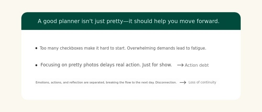 A system where audio, planner, emotion cards, and wallpapers are all connected, not just a simple diary.