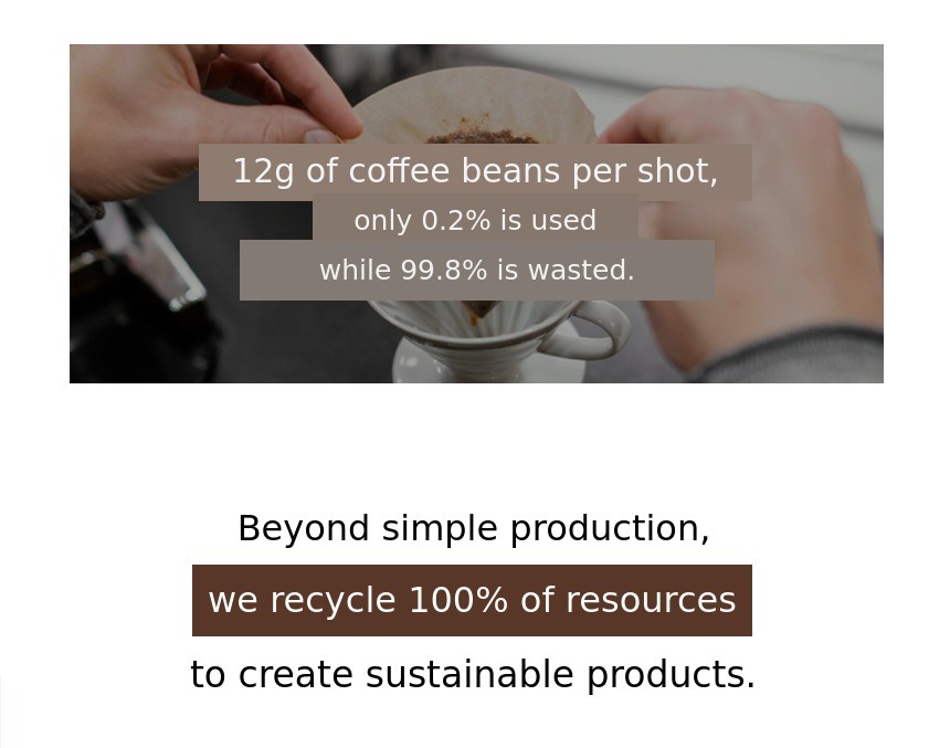 The process was not easy, but after countless experiments and research, finally!Completely vegan, made with only pure natural ingredients. Now, we can turn every single coffee bean into a product without leaving any behind.