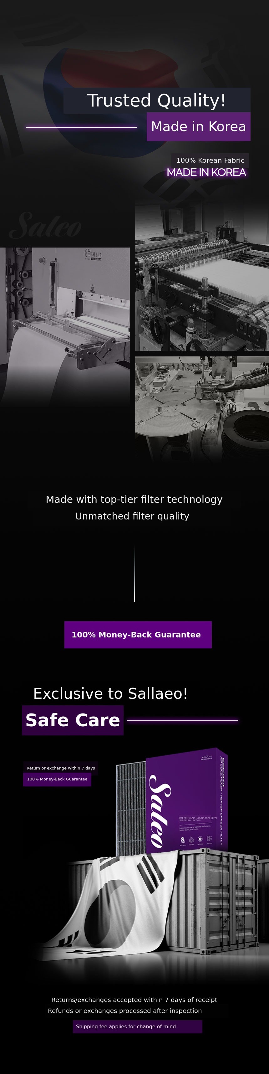 We at SALEOhave over 10 years of expertise in manufacturing filters ourselves.Our brand was born from this experience. We directly produce air purifier filters, air conditioner filters, and car heater filters both domestically and internationally, and our technology has been recognized.