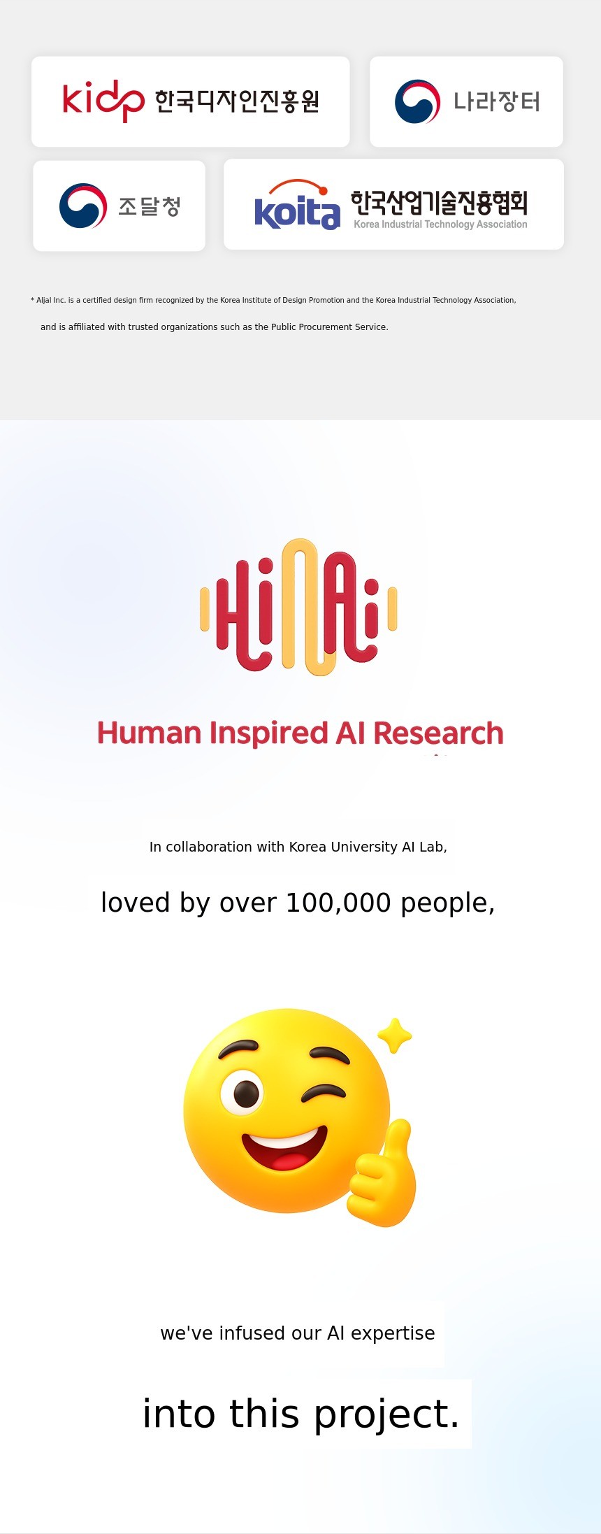 Many people around us were concerned that inquiries about detail pages might decrease, but in fact, we are not too worried. Aljal Studio's premium detail pages require a lot of human touch from experts, and the average price exceeds 3 to 4 million KRW. However,not everyone needs such high-quality detail pages.