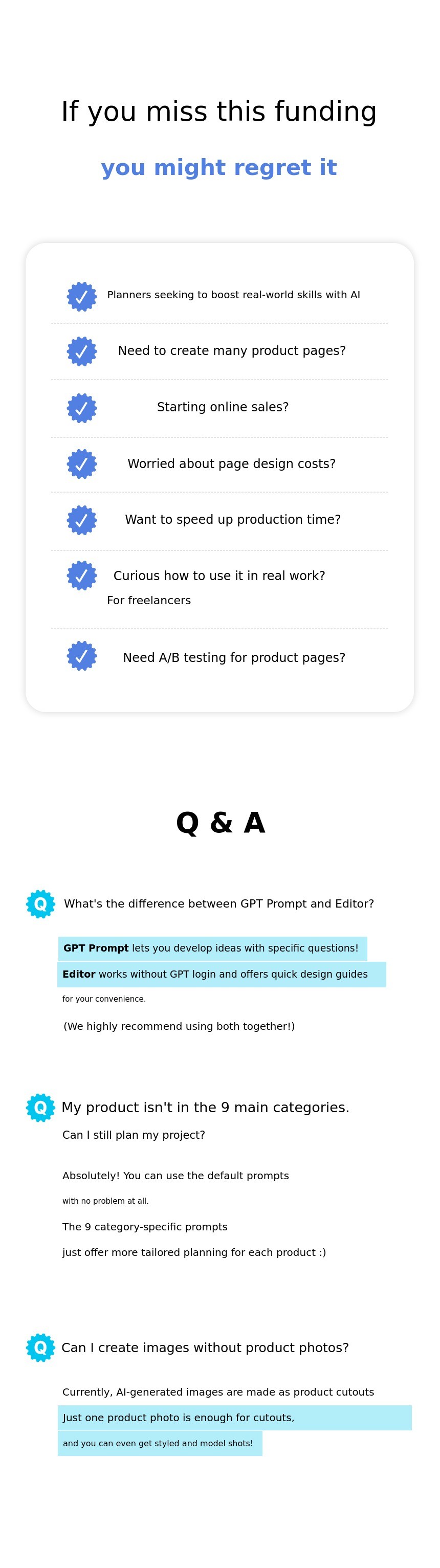 This funding is not the end; we plan to continue development and improvements so that we can help the supporters who cheered us on. We believe it will be a great help to everyone who has difficulty creating detail pages, and we hope you make good use of it.